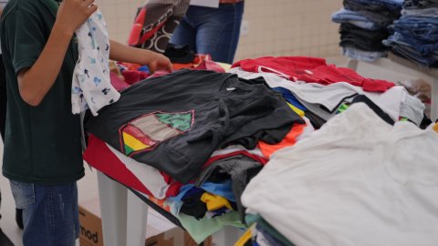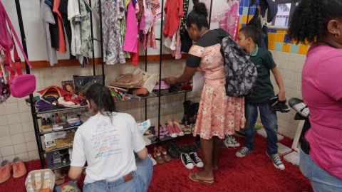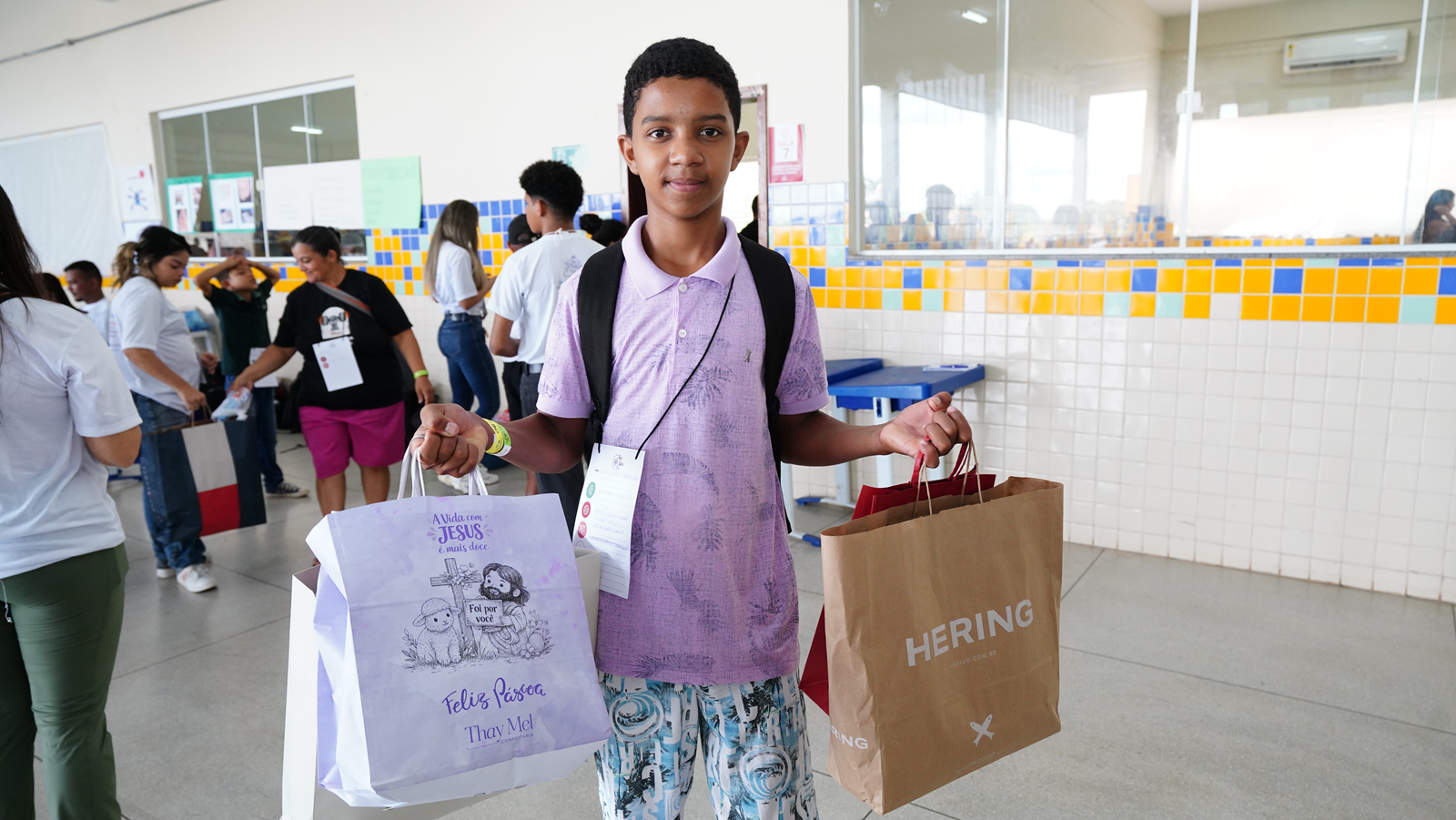 Mateus Ribeiro Cardoso da Silva, de 14 anos, tem mais quatro irmãos, todos do sexo masculino. Aluno da escola sede do evento, ele, a mãe e os irmãos passaram pelo mutirão. "Viemos fazer a identidade nova, ir ao dentista, vacinar e cortar o cabelo", contou ao lado de dois dos irmãos, Pablo Lorenzzo Ribeiro e Thayrom Ribeiro Cardoso da Silva, cada um com suas sacolas de roupas recebidas.