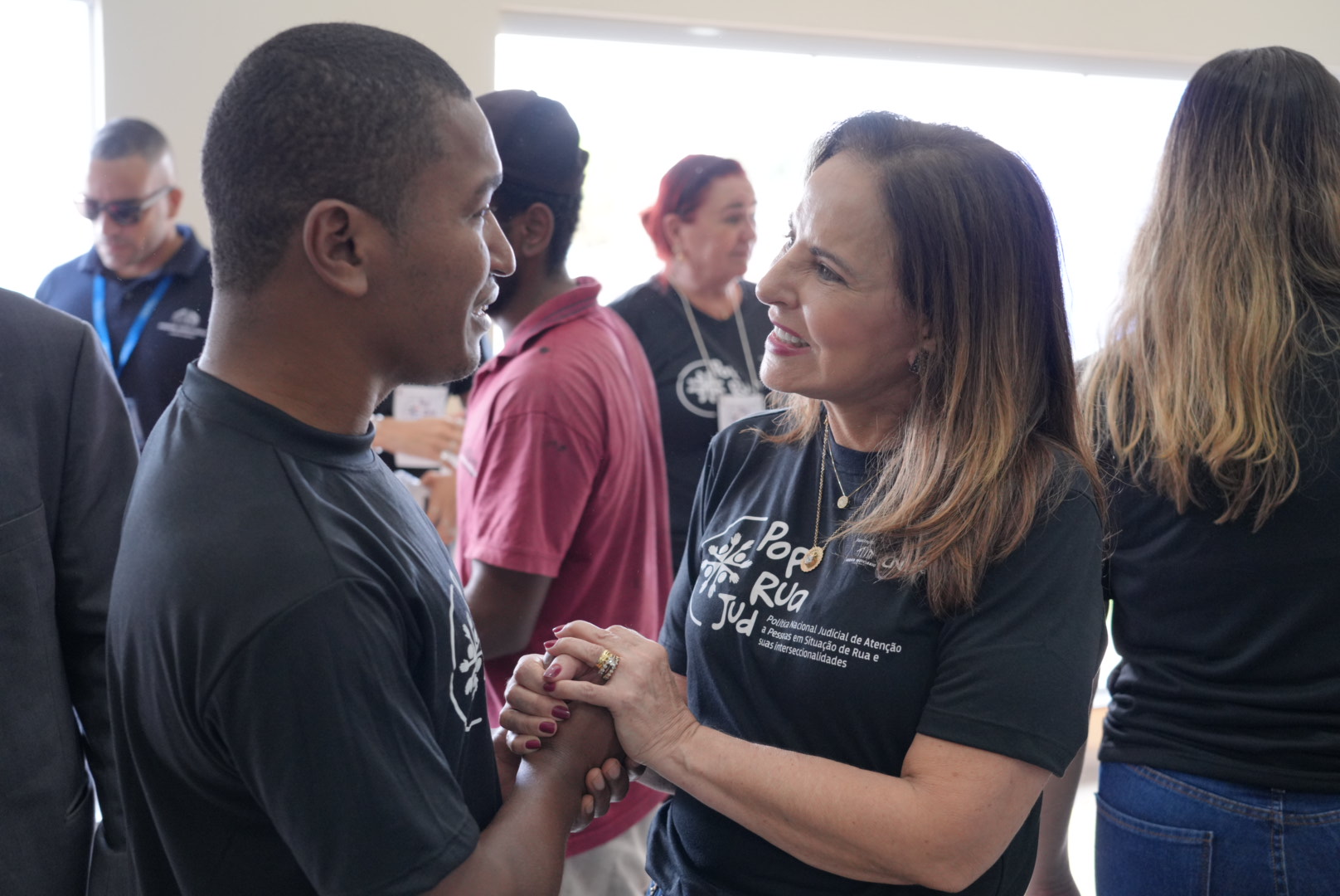 A 3ª edição do Mutirão Pop Rua Jud, aberto pela manhã de sexta-feira (17/4), representa "uma escolha institucional de um Judiciário que decidiu sair de trás das bancadas para caminhar onde a vida acontece e onde muitas vezes ela morre". A frase é da coordenadora do Comitê Regional Pop Rua Jud Tocantins, desembargadora Ângela Prudente, que também falou em nome da presidente do Tribunal de Justiça, desembargadora Maysa Vendramini Rosal, ao abrir o evento na Escola de Tempo Integral Jardenis Jorge Frederico, no Setor Maracanã, em Araguaína, onde oferece serviços gratuitos voltados à população em situação de rua e em situação de vulnerabilidade social até as 18h.