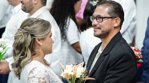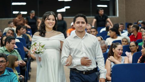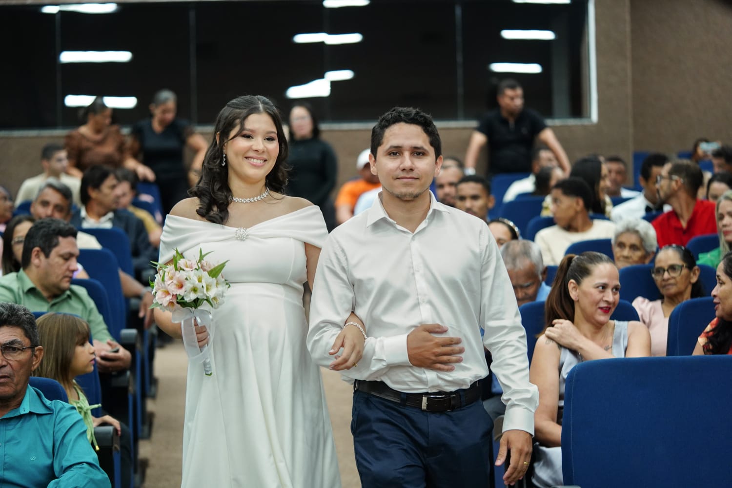 A cerimônia oficializou a união de 96 casais, em um evento promovido pela Diretoria do Fórum da Comarca de Araguaína, em parceria com o Centro Judiciário de Solução de Conflitos e Cidadania (Cejusc) e o Serviço de Registro Civil das Pessoas Naturais, Interdições e Tutela de Araguaína. A celebração foi embalada pela banda Reciclarte, da Escola de Artes Raimundo Paulino, e acompanhada de perto por familiares, amigos e autoridades locais.