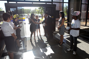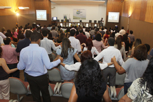 Com o auditório do TJTO lotado foi aberta nesta segunda-feira, (24/10) a semana do servidor do Poder Judiciário do Tocantins. Até a próxima quinta-feira muitas atividades serão realizadas envolvendo diretorias e gabinetes do TJ bem como as Comarcas. Logo na chegada para o trabalho, os servidores foram recepcionados pelos diretores do Tribunal. Depois todos puderam se confraternizar num animado café da manhã. Em seguida eles ouviram as palavras da presidente do Tribunal de Justiça Desembargadora Jacqueline Adorno que deu as boas vindas aos presentes. O Diretor Geral da Escola Superior da Magistratura Tocantinense (ESMAT), Desembargador Marco Villas Boas também falou aos servidores dando por aberta a programação. A primeira atração foi o palestrante Omar Hennemann com a palestra “Ser melhor o desafio de cada dia”. Com exemplos do cotidiano o palestrante emocionou os presentes e deixou a semana que tem o tema “servidor motivado, servidor feliz” ainda mais animada.