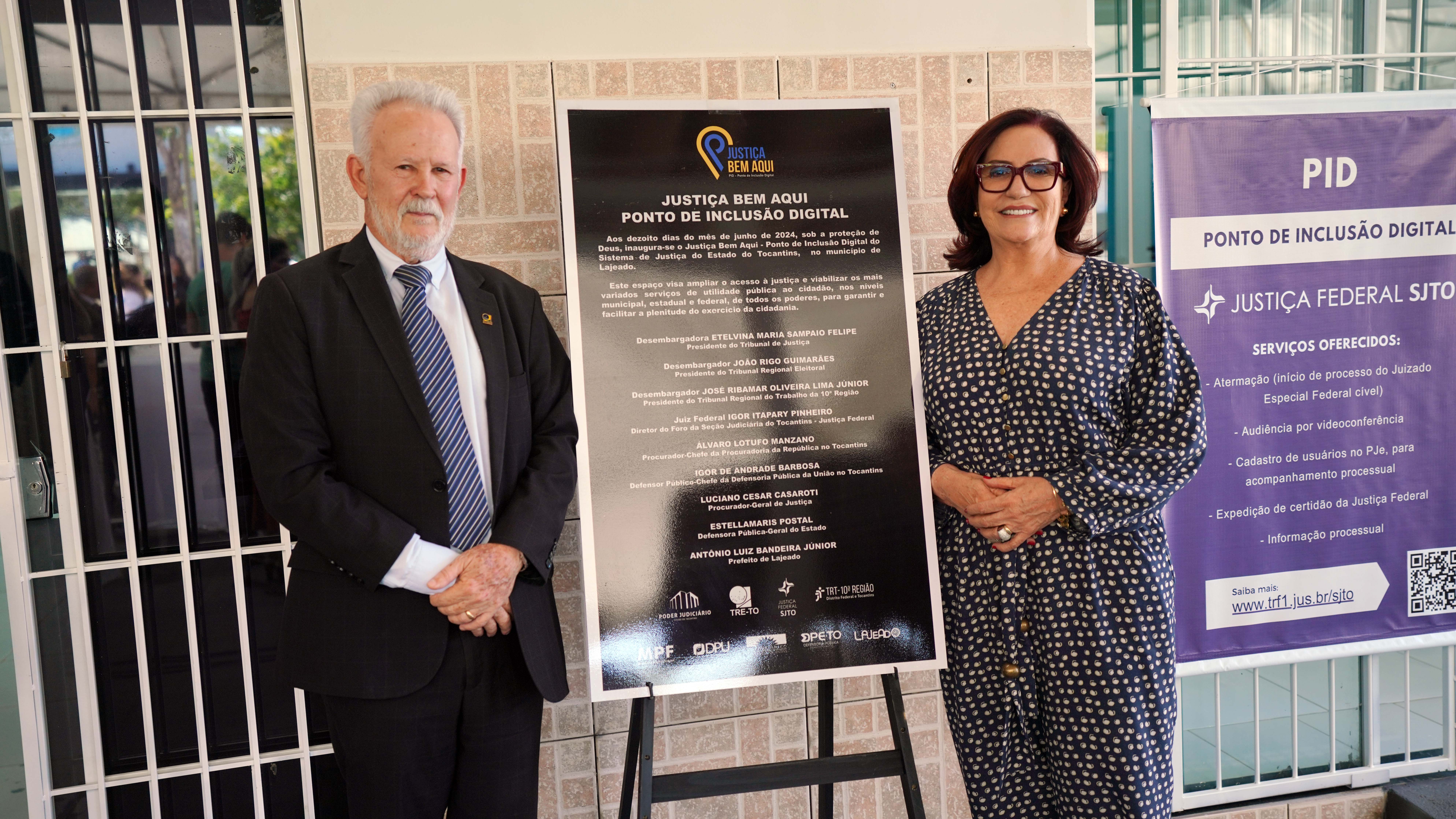 “Esse ponto de inclusão digital agora denominamos de ‘Justiça Bem Aqui’, porque aqui estão reunidos todos os segmentos do Sistema de Justiça”, destacou a presidente do Tribunal de Justiça do Tocantins, desembargadora Etelvina Maria Sampaio Felipe, na manhã desta terça-feira (18/6), durante solenidade de reinauguração do Ponto de Inclusão Digital do Município de Lajeado. “Aqui a Justiça se faz presente”, declarou.