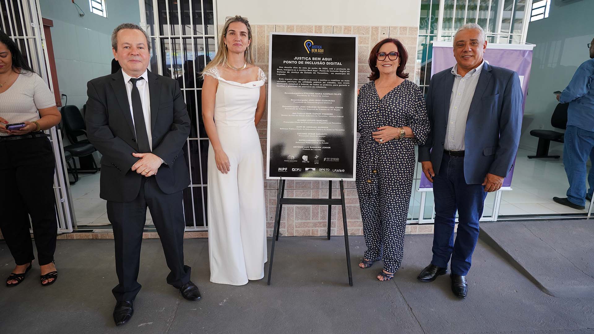Prestigiado o evento também a juíza auxiliar da Presidência do TJTo, Rosa Maria Gazire Rossi; o presidente da Câmara Municipal de Lajeado, vereador Neemias Costa Carvalho; o ouvidor regional eleitoral, juiz José Maria Lima; o diretor do Fórum da Comarca de Miracema do Tocantins, juiz Marcello Rodrigues de Ataídes; o juiz titular da 1ª Vara de Miracema, André Fernando Leme Netto; a promotora de Justiça da 2ª Promotoria de Justiça de Miracema, Sterlane de Castro Ferreira; o primeiro subdefensor público-geral, Pedro Alexandre Conceição Aires Gonçalves; a defensora pública Francisca di Fátima Cardoso; o assessor jurídico da Defensoria Pública da União, André Brandão; a diretora-geral do TJTO, Ana Carina Mendes Souto; o diretor-geral do TRE, Jonas Demóstene Ramos; o secretário executivo da Secretaria de Estado da Segurança Pública, Reginaldo Meneses; o vice-prefeito de Lajeado Edilson Mascarenhas; diretores do TJTO, demais autoridades e população local.