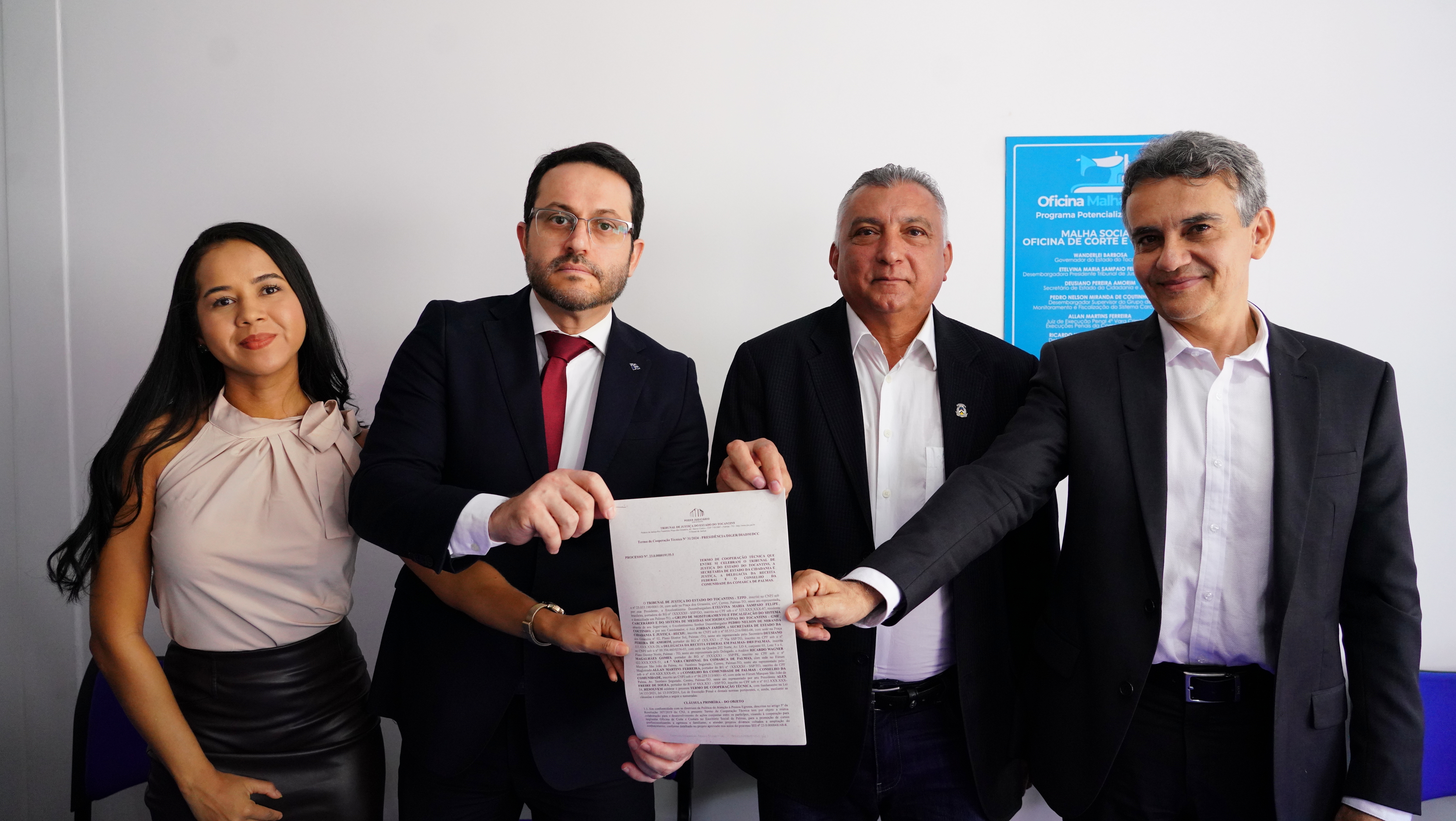 Secretário da Cidadania e Justiça (Seciju), Deusiano Amorim; Delegado da Receita Federal. Dr. Ricardo Wagner Magalhães; Assessor de Coordenação do Grupo de Monitoramento e Fiscalização do Sistema Carcerário e Socioeducativo (GMF), Poliano Mendes; Juiz da 4º Vara Criminal e de Execuções Penais, Allan Martins Ferreira; Coordenadora do Eixo 3 do Programa Fazendo Justiça, Francine de Paula; Defensora Pública, Napociane Póvoa; Presidente do Conselho da Comunidade, Maykilene Nunes.