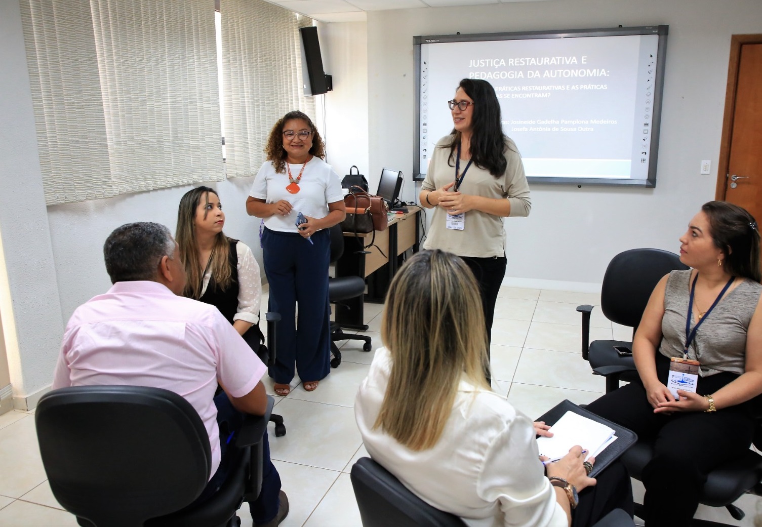 Com a orientação do juiz Antônio Dantas de Oliveira Junior, e da facilitadora Eliene Diniz da Silva, a temática “Justiça Restaurativa na Prevenção da Evasão Escolar” foi explorada ao discutir as necessidades de desenvolvimento de novas abordagens restaurativas como fator na manutenção do engajamento dos(as) estudantes.