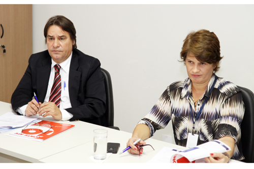 Nesta terça-feira (10/9) estiveram reunidos vários representantes de órgãos públicos. Pelo Poder Judiciário: o desembargador Eurípedes Lamounier, gestor das Metas 3 e 4 do Enasp junto ao Tribunal de Justiça do Estado do Tocantins, juiz José Ribamar Mendes Júnior, representando a Escola Superior da Magistratura Tocantinense (Esmat), a juíza Silvana Parfieniuk e o diretor Geral do TJTO, Flávio Leali Ribeiro, que representaram a presidente do Tribunal, desembargadora Ângela Prudente. Representando a classe dos magistrados: o juiz Helvécio de Maia Brito Neto, presidente da Associação dos Magistrados do Estado do Tocantins (Asmeto). Pelo Ministério Público Estadual: o procurador de Justiça Marco Antônio Alves Bezerra. Pelo poder executivo estadual: o delegado Alberto Cavalcante, representando a Secretaria de Segurança Pública do Tocantins, e Cristiana Baso, subsecretária de Educação Básica da Secretaria de Educação e Cultura do Estado do Tocantins. Presentes ainda assessores da Secretaria de Educação do Estado do Tocantins e do Ministério Público Estadual, e a diretora executiva da Esmat Ana Beatriz de Oliveira Pretto.