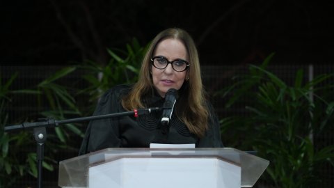 “Me emociona ver tantos olhares que brilham, tantos sonhos realizados, mãos entrelaçadas e sorrisos que dizem SIM. Aqui temos casais de 18 a 78 anos de idade. Nós acreditamos no amor e queremos que ele seja reconhecido e respeitado”, declarou a desembargadora Ângela Prudente.