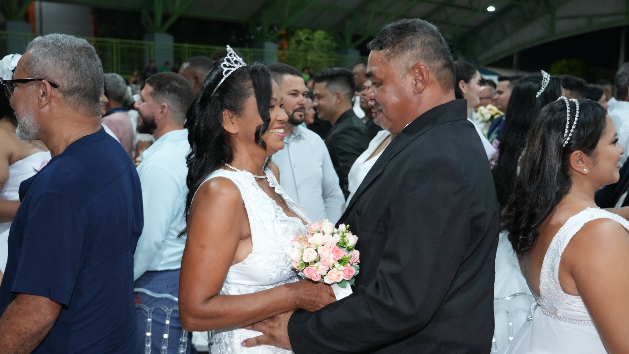 O Casamento Comunitário foi celebrado pelo juiz de paz Edison Sousa, que finalizou o matrimônio com o tradicional beijo dos noivos: declarando-os, enfim, casados!