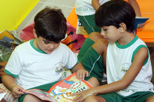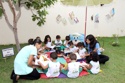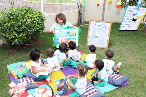 Envolvendo as professoras do turno matutino e os alunos entre dois e seis anos que a escola atende, foram montados quatro ambientes lúdicos para que as crianças pudessem interagir com algumas publicações infantis: uma Tenda Literária, o Cantinho de Monteiro Lobato, o Guarda-Chuva de Revistas em Quadrinhos e o Varal de Poesias.