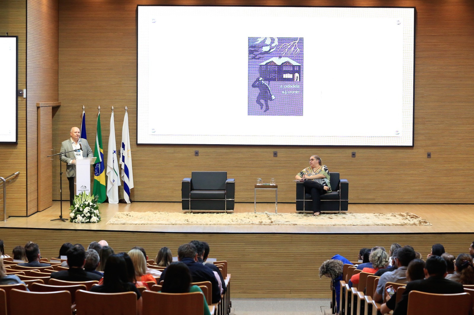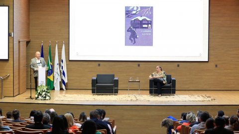 A mesa da palestra foi coordenada pela juíza Flávia Afini Bovo, diretora do Fórum da Comarca de Palmas.