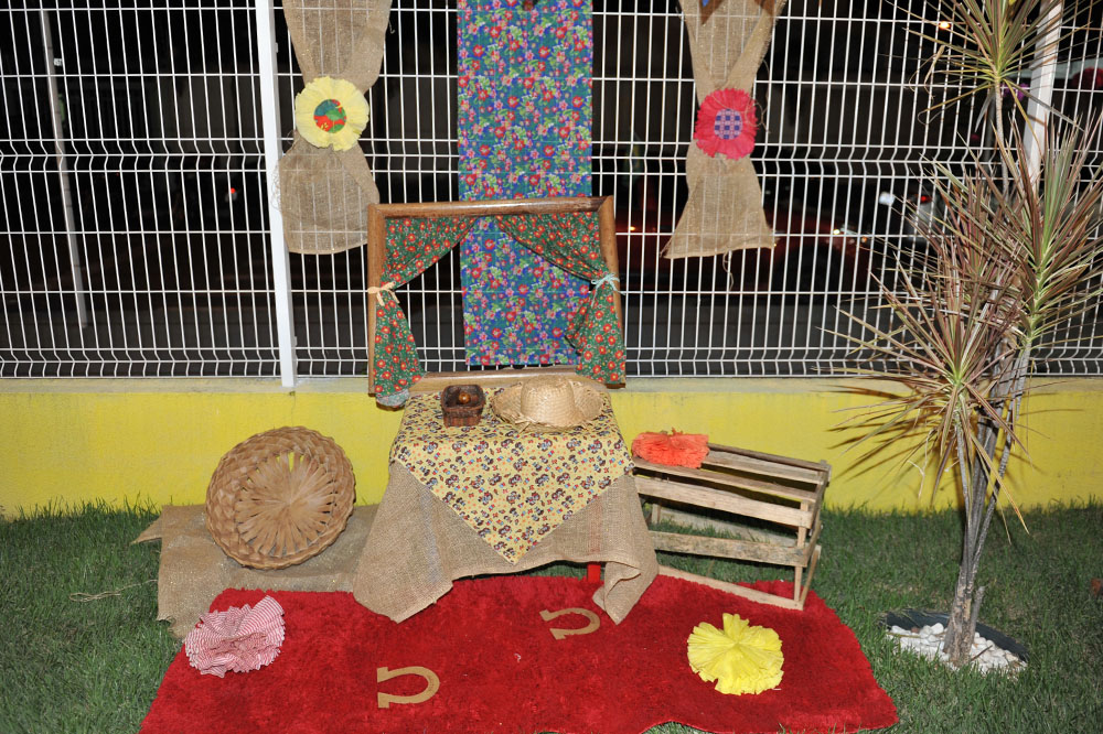 O CEI foi especialmente decorado para a festa junina com as cores verde e amarelo, em alusão à Copa do Mundo. A decoração foi desenvolvida durante as aulas com os alunos, que prepararam as bandeirinhas e pintaram a “Vila da Paz”. Para a coordenadora do CEI, Luciana Carvalho, o Arraiá é importante para integralizar os projetos que integram o plano pedagógico do Centro. “A paz é o fruto que queremos colher no final do ano letivo com os nossos projetos, e o Arraiá foi um ponto forte na condução dos mesmos”.