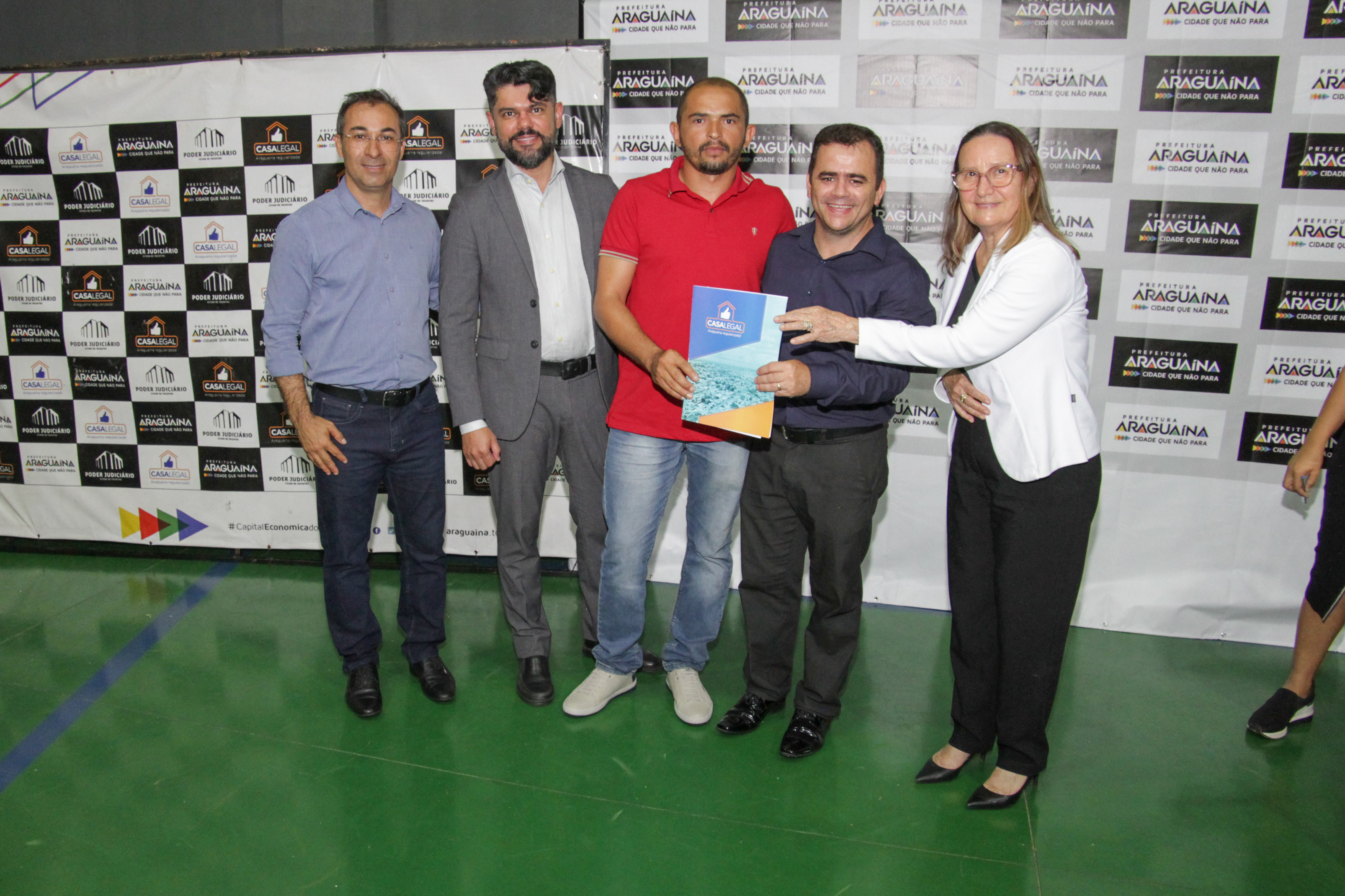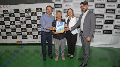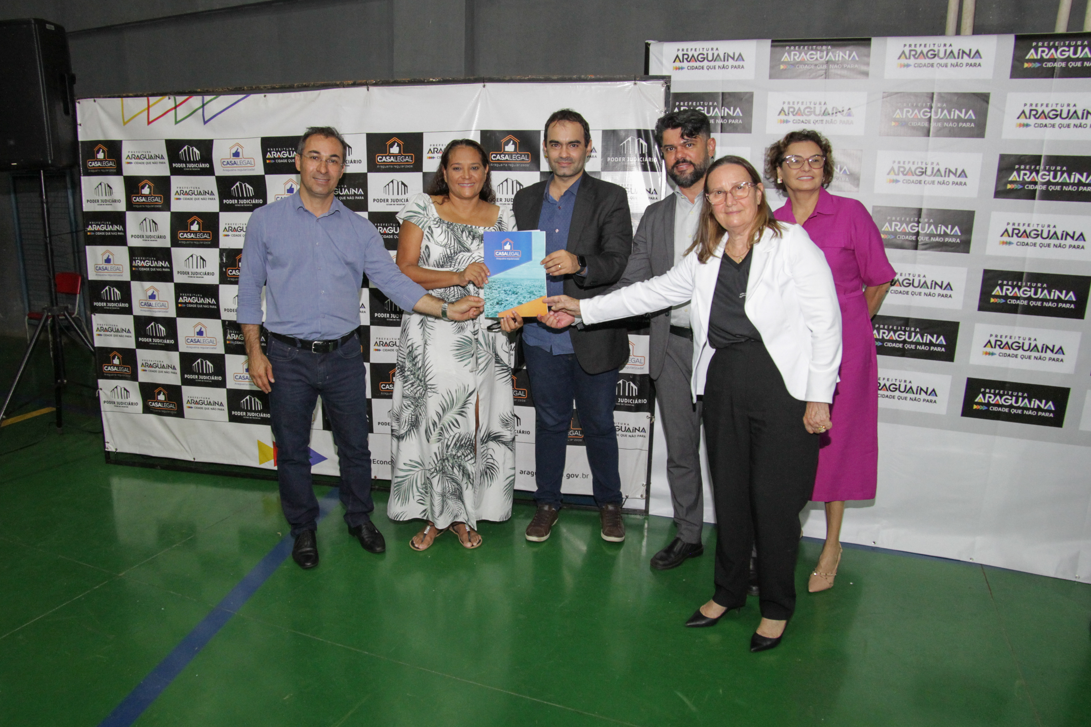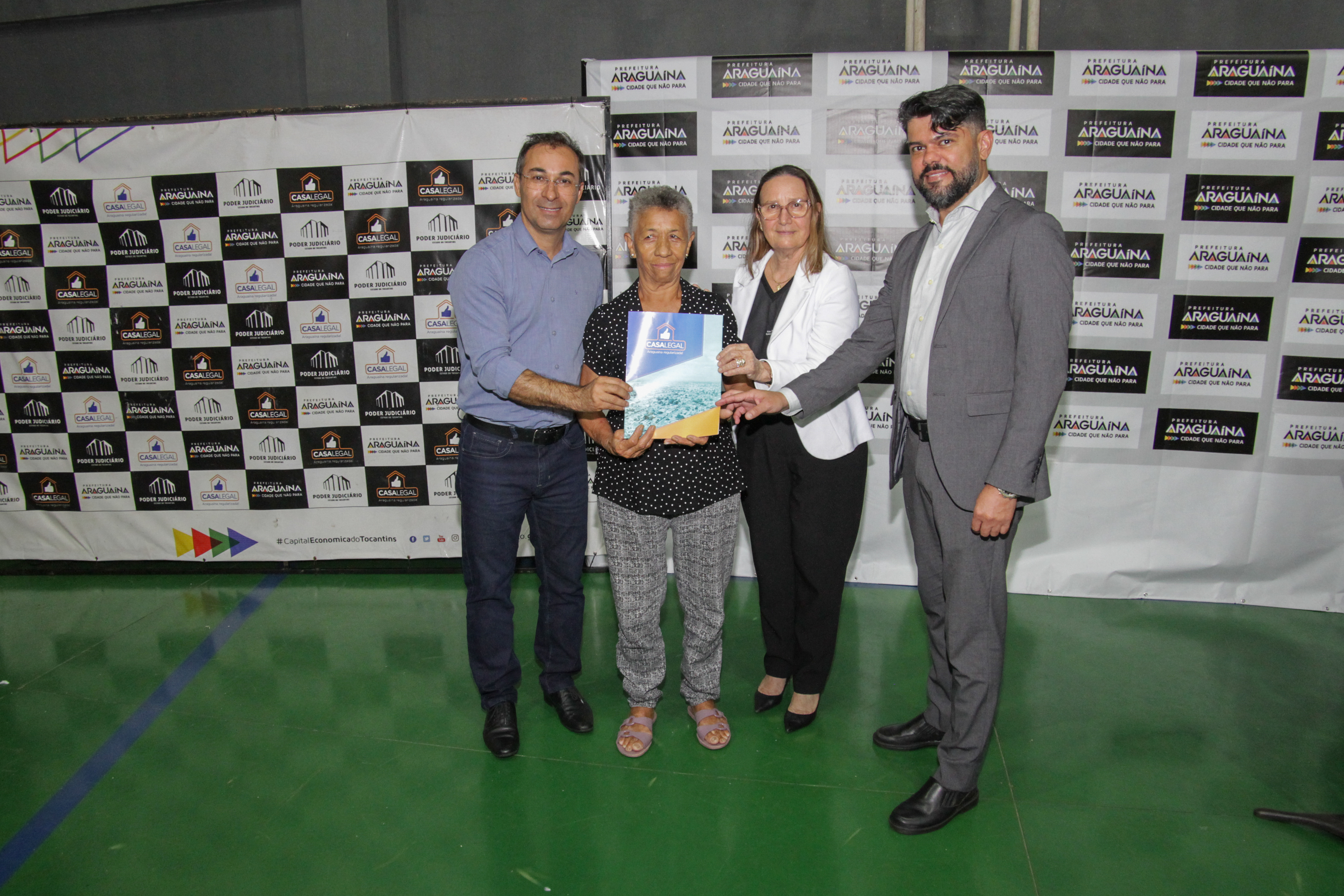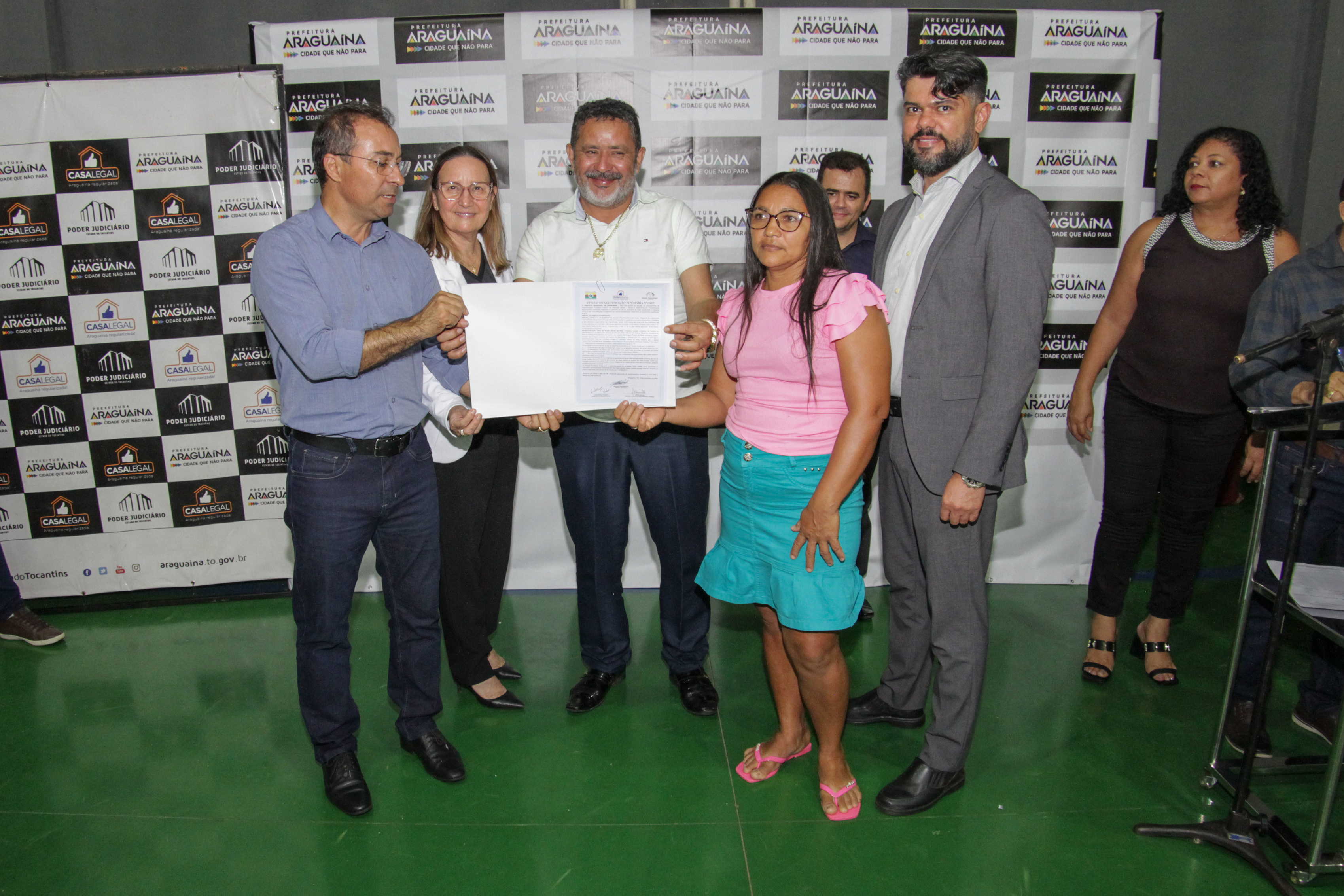 O acender das luzes no ginásio poliesportivo da Escola Municipal Domingos de Sousa Lemos, no setor Jardim das Flores, em Araguaína, teve um motivo especial na noite da segunda-feira (11/3).  Foi uma partida diferente, onde 114 famílias - 107 do setor Ana Maria e mais sete do setor Itapuã - venceram a informalidade e saíram com o título de regularização fundiária na mão. Um golaço da Corregedoria-Geral da Justiça (CGJUS), em uma tabelinha perfeita entre o Núcleo de Prevenção e Regularização Fundiária (Nupref) e as instituições parceiras: Governo do Tocantins, Prefeitura Municipal e Cartório de Registros.