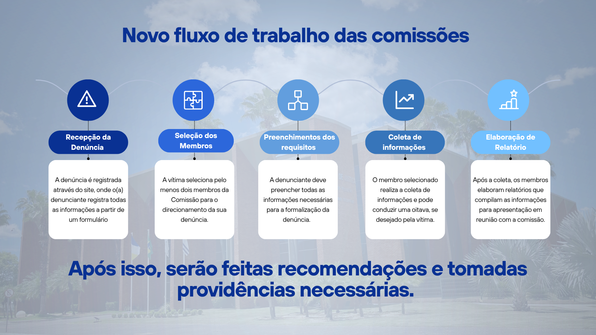 Além das mudanças no fluxo, estão previstas a atualização da Cartilha de Enfrentamento ao Assédio e reformulação do site da Cassedio, para facilitar a denúncia e promover um acesso simplificado e intuitivo aos serviços.