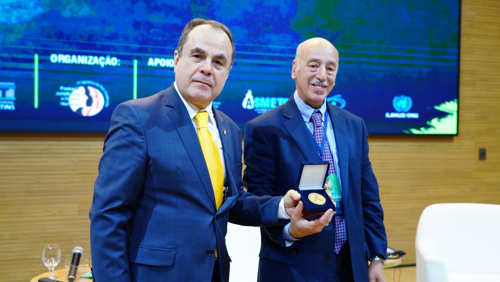 Ao final do painel, o doutor Mohamed Jaouhar foi homenageado com o Medalhão da ESMAT, em reconhecimento à sua colaboração com as atividades da escola e o engrandecimento do Poder Judiciário do Tocantins. A homenagem foi entregue pelo desembargador Marco Villas Boas, diretor-geral da Escola.