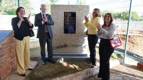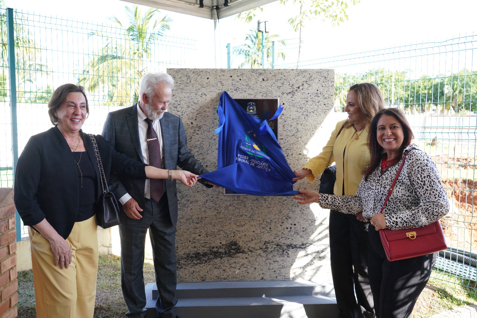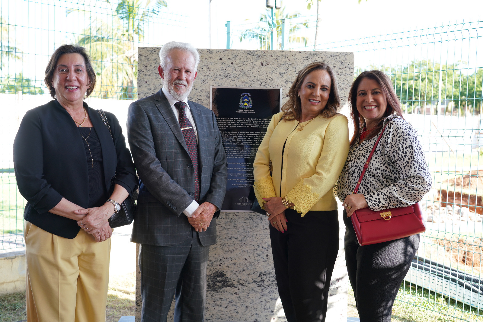 Desembargadores João Rigo, Ângela Prudente e Ângela Haonat e a presidente da Asmeto, Odete Almeida, no lançamento da pedra fundamental no TJTO.