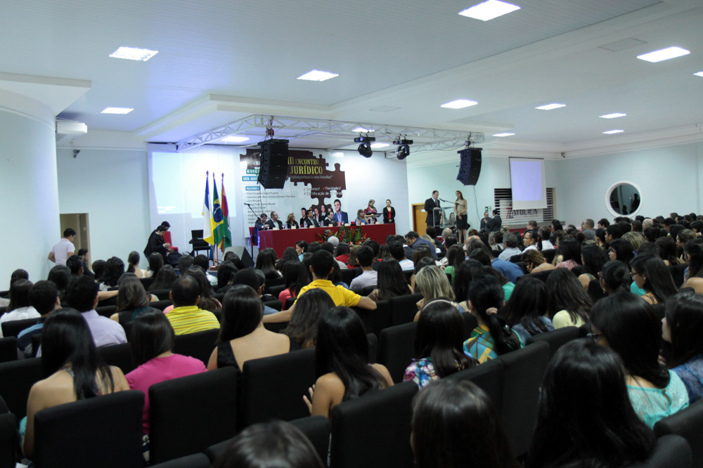 Auditório lotado, com aproximadamente 700 pessoas, este foi o cenário de abertura do VII Encontro Jurídico da Faculdade Católica Dom Orion, em Araguaína. A solenidade contou com a presença da presidente do Tribunal de Justiça do Estado do Tocantins, desembargadora Ângela Prudente,  que discursou, como convidada de honra, para  autoridades e estudantes na noite desta quarta-feira (14/5). Este ano, a Faculdade trabalha com o tema  “O Direito Contemporâneo e Seus Desafios”.
