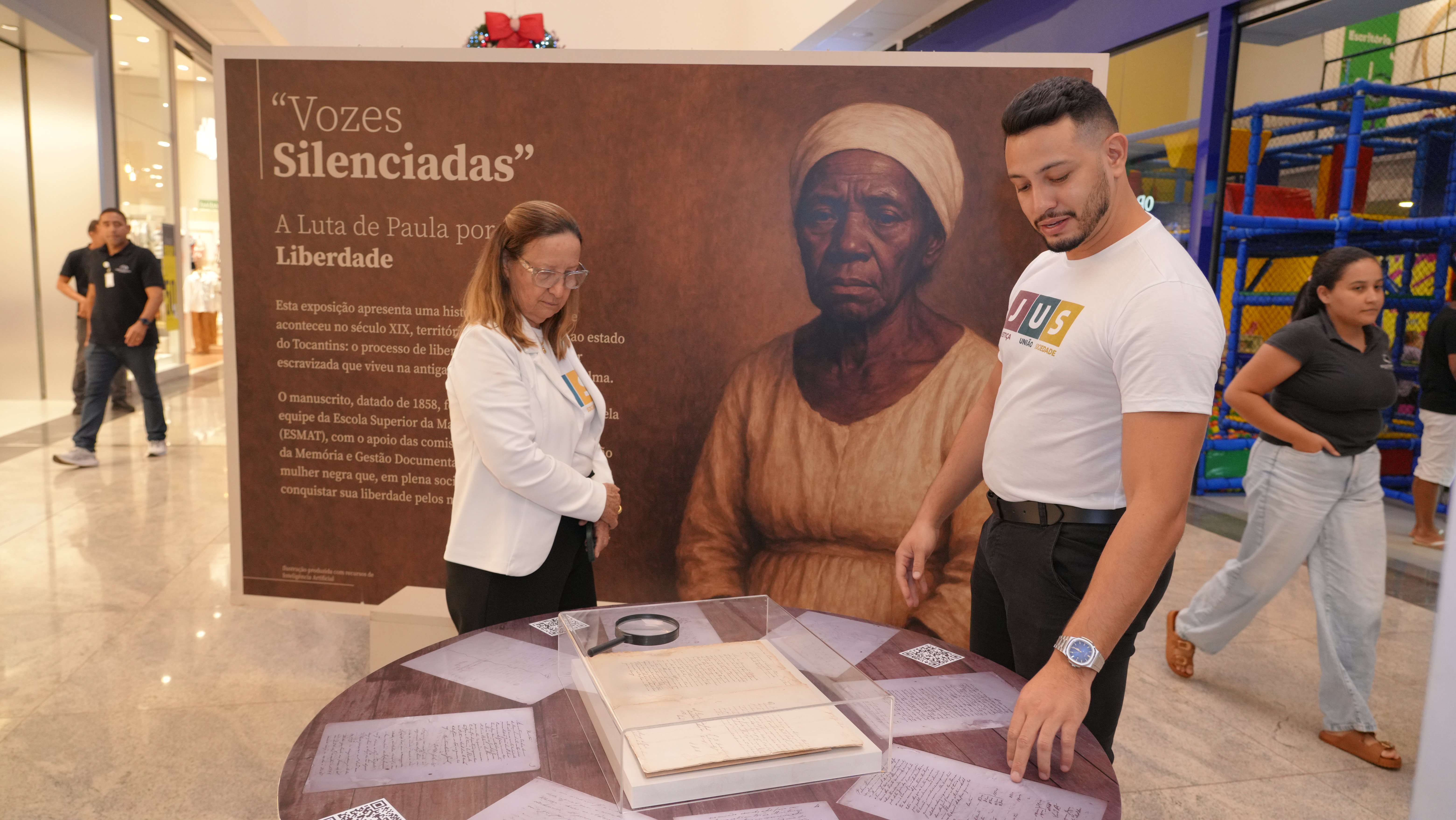 Os moradores de Araguaína podem visitar o estande do Tribunal de Justiça no Shopping Center Lago até esta sexta-feira (28/11). Quem passar pelo local vai conferir de perto a exposição Vozes Silenciadas: A Luta de Paula por Liberdade. A história desta mulher negra e escravizada que conquistou judicialmente sua liberdade em 1858, três décadas antes da Lei Áurea, é contada por meio de paineis, videos e documentos históricos.