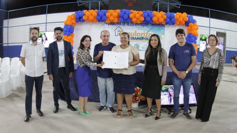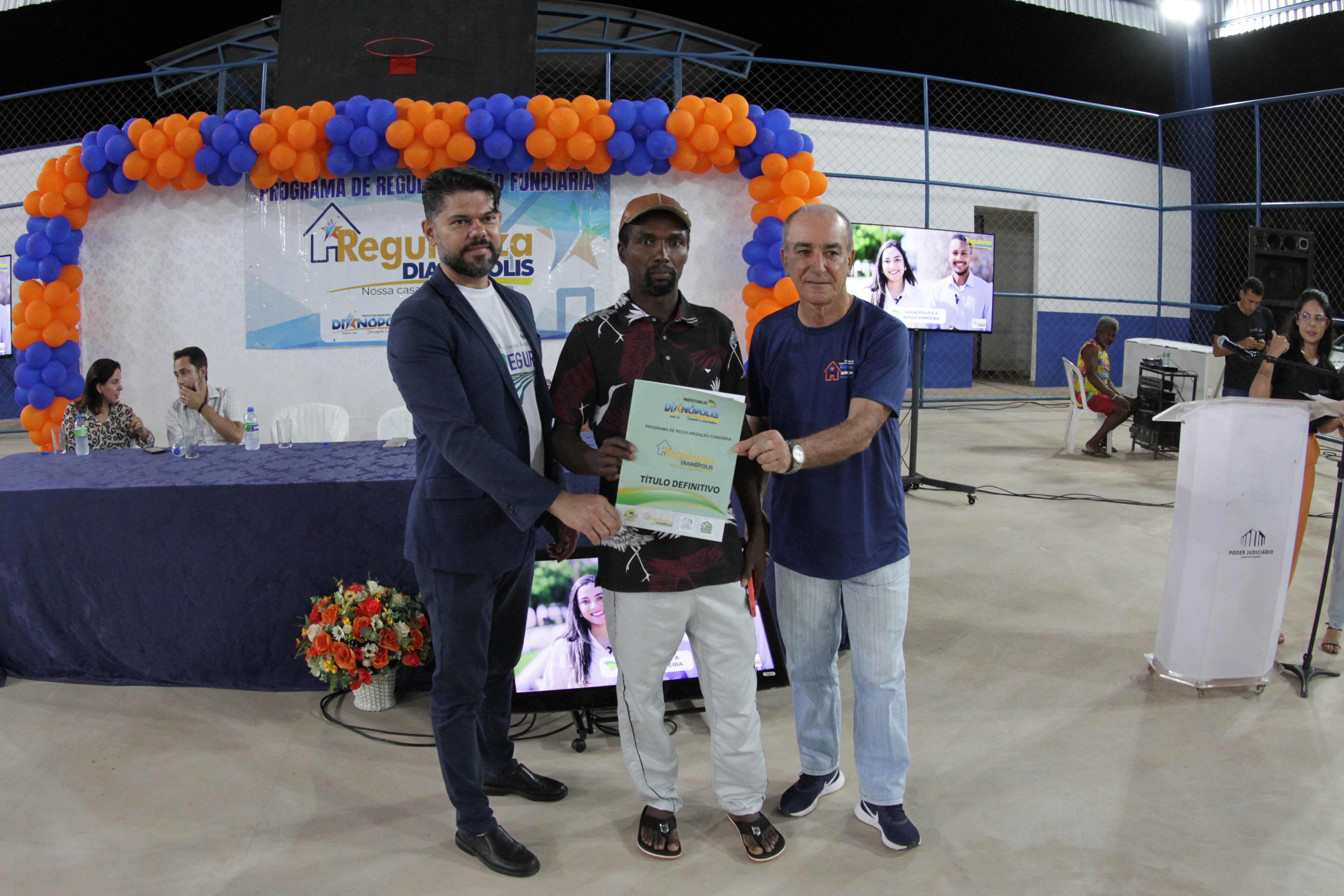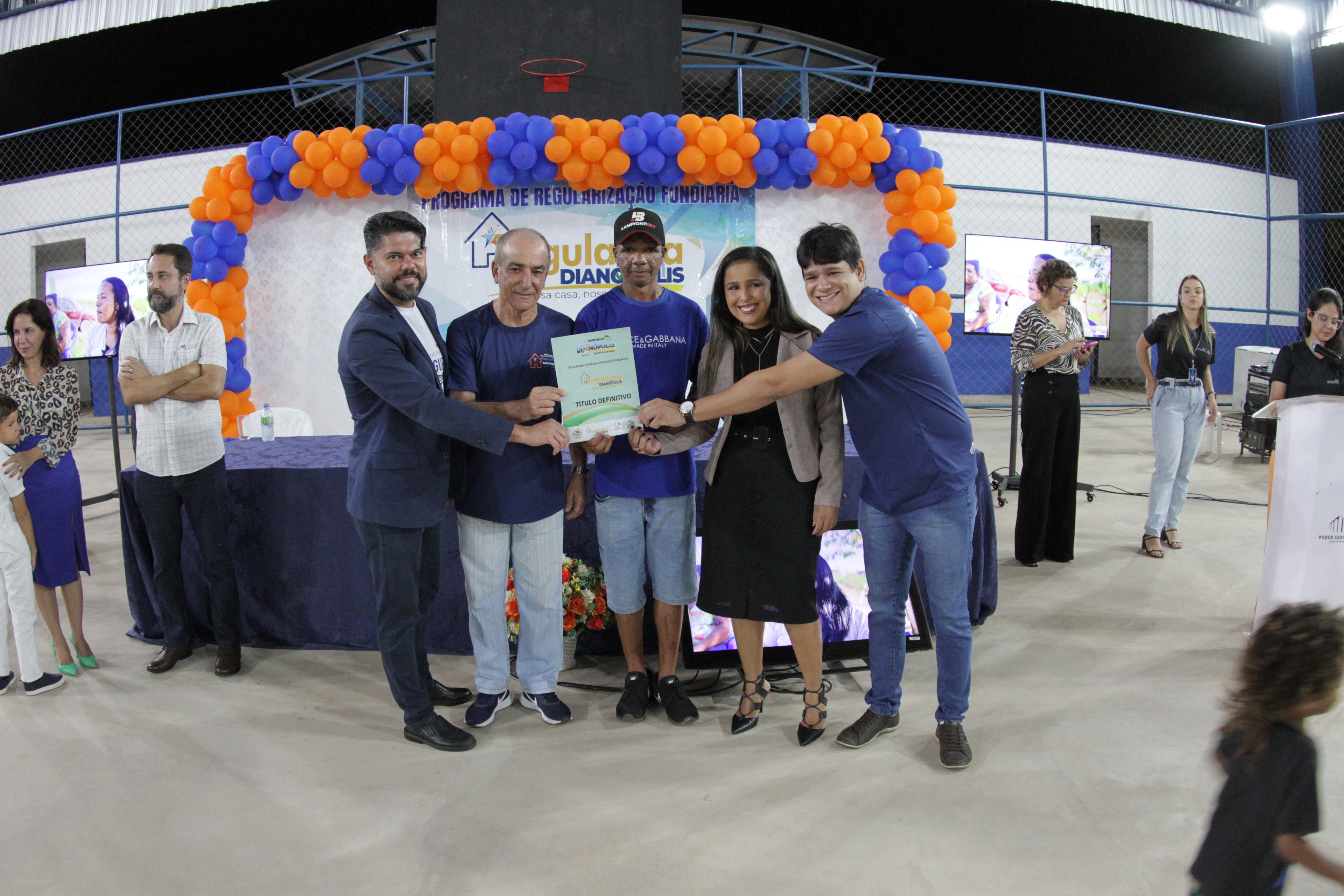 A Praça da Juventude, em Dianópolis, foi palco na noite desta segunda-feira (1º/4) para a 3ª etapa de entrega de títulos de regularização fundiária na cidade. Desta vez, 318 moradores do setor Vila Nova foram beneficiados.