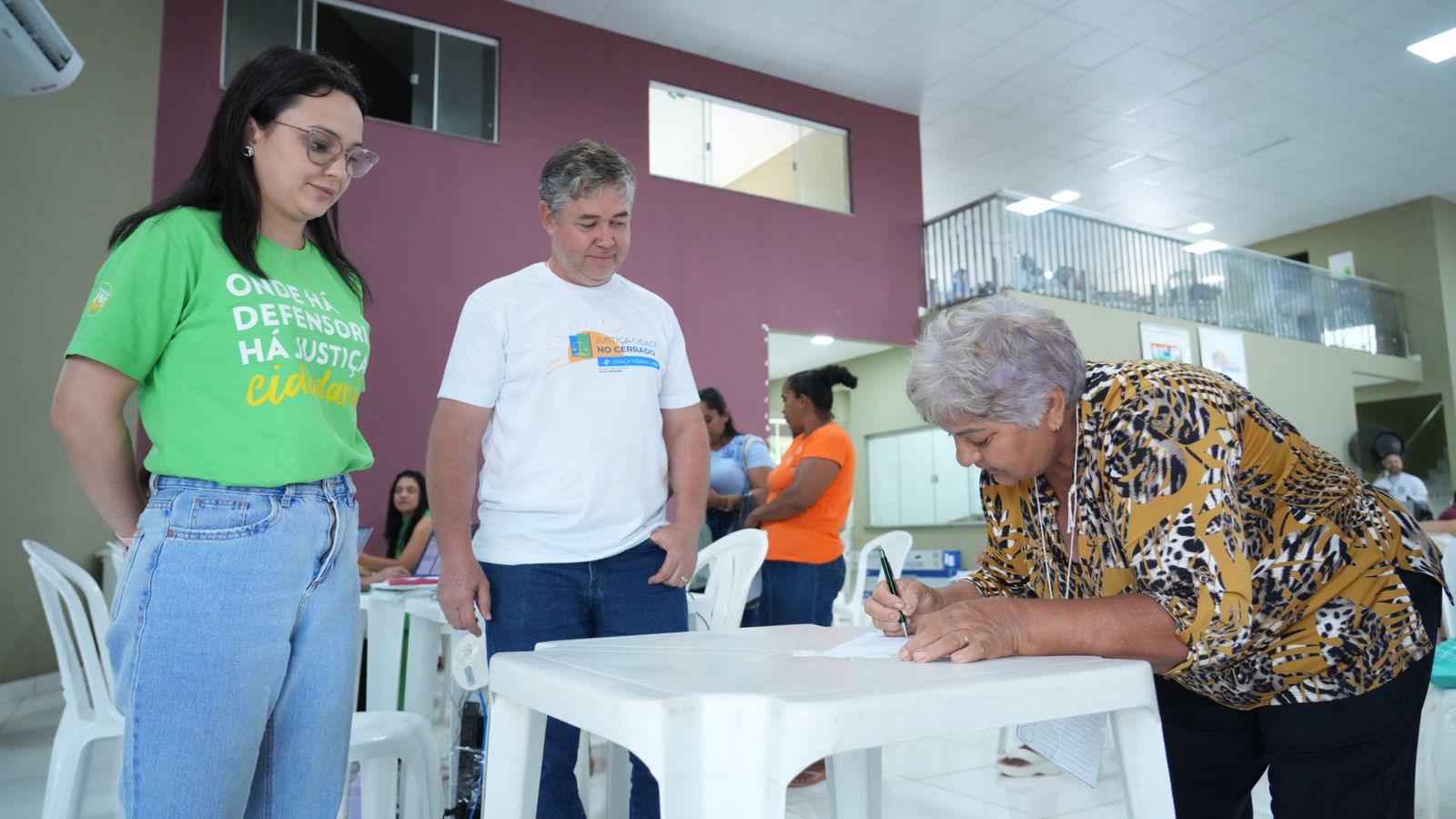 A irmã já havia tentado solicitar o BPC (benefício destinado a idosos ou pessoas com deficiência de baixa renda) junto ao INSS, mas teve o pedido negado por não ser a representante legal (curadora) do irmão. "Eu soube que tinha esse acesso aqui hoje e vim atrás", disse a mulher, assistida pela Defensoria Pública, na Justiça Cidadã no Cerrado.