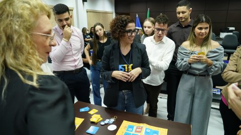 Dentro das ferramentas de inovação está a linguagem simples, trabalhada na gestão por meio do projeto SimplesTOC. Na ocasião, a cogestora do projeto, Roberta Maciel, falou sobre o programa e conduziu o jogo “simplifique” (criado pelo Aurora - Laboratório de Inovação do TJDF), que tornou o encontro mais leve e divertido.