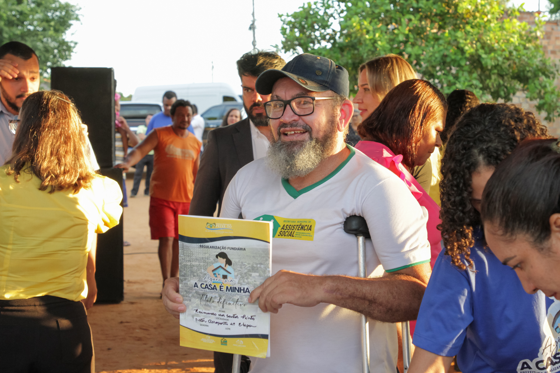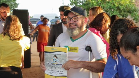 Na data em que se comemora o Dia Internacional das Pessoas com Deficiência, o servidor público Raimundo dos Santos Pinto, 49 anos, comemorou duas grandes vitórias na vida: estar vivo e receber o título da casa onde mora desde 2003. “Dizem que sou um milagre, pois ano passado eu sofri um acidente de carro, passei 29 dias em coma e perdi uma perna. Achei que nem iria sobreviver. Hoje estou aqui comemorando mais uma vitória. Por isso, pra falar a verdade, eu não tenho nem palavras pra dizer o quanto eu estou feliz de estar recebendo o título da terra que a gente ocupa. Ganhei esse lote seis meses depois de chegar em Peixe e isso já faz 20 anos, então eu nem esperava receber o título”, disse.