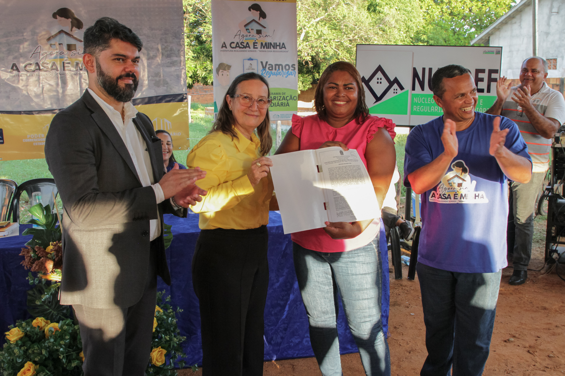“O Nupref foi criado para dar a garantia necessária aos municípios para fazer efetivo aquilo que está em nossa Constituição, o respeito, a dignidade, a moradia. Mas efetivar o direito à moradia é um processo complexo que depende da união de esforços de vários entes e da população. O papel do Judiciário não é apenas julgar processos, é promover a garantia de direitos, buscando a transparência para que o cidadão possa escrever uma nova história em sua vida”, destacou Juiz Wellington na solenidade de entrega dos títulos.