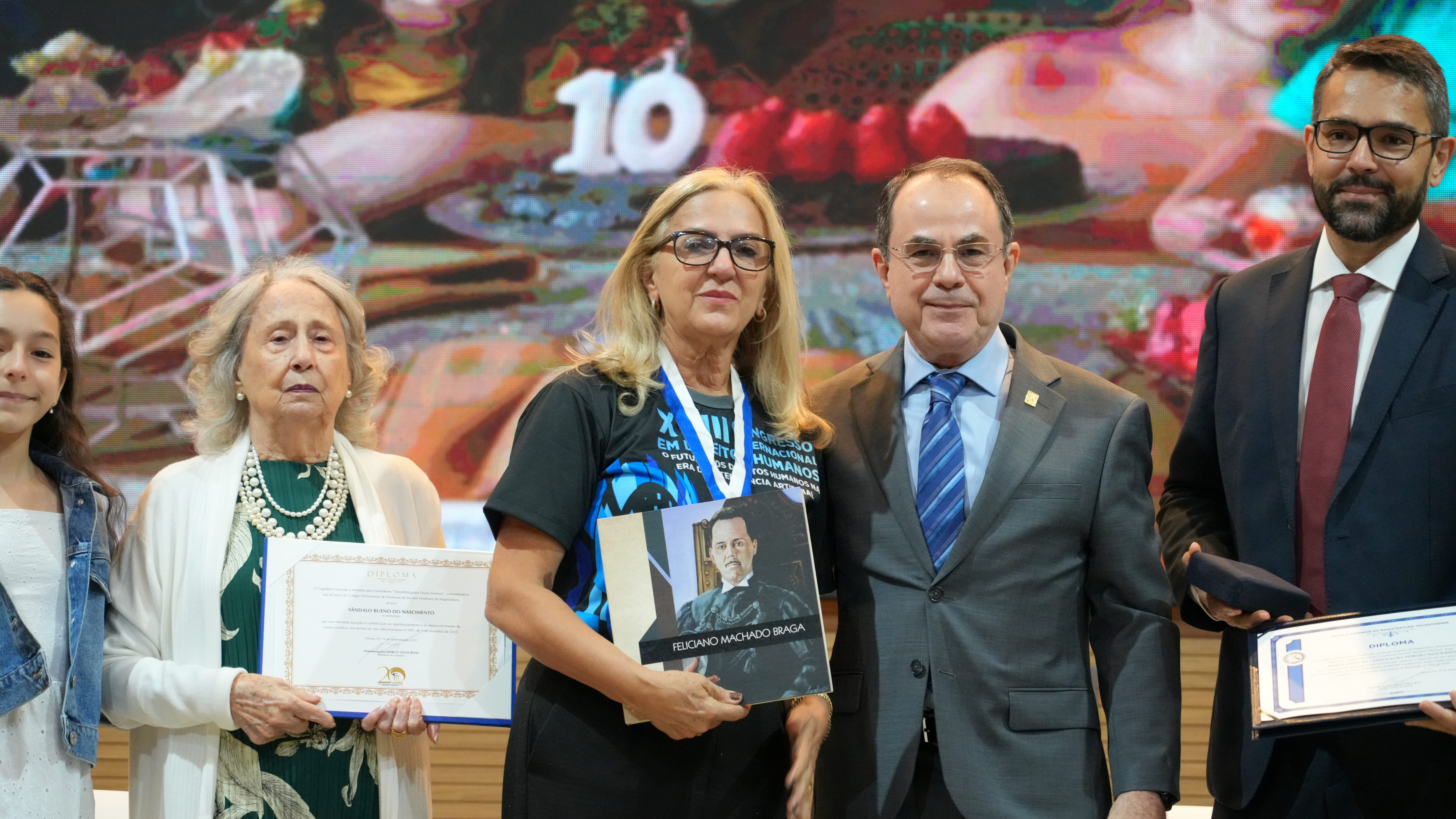 Além disso, a Medalha do Mérito Acadêmico “Feliciano Machado Braga” foi entregue à coordenadora do Núcleo de Pós-Graduação da Esmat, Maria Luiza do Nascimento, por sua contribuição acadêmica e institucional.