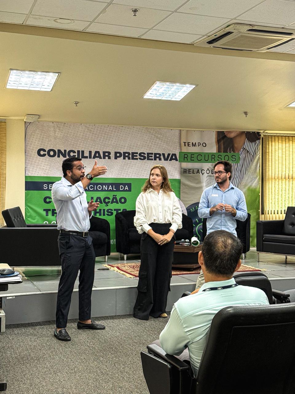 A equipe do Centro de Inovação do Tribunal de Justiça do Tocantins (Inovassol) promoveu, nessa terça-feira (7/10), uma oficina sobre Linguagem Simples para magistrados(as) e servidores(as) do Tribunal Regional do Trabalho da 10ª Região (TRT-10). O encontro foi realizado no auditório do Fórum Trabalhista de Palmas e teve como foco estimular uma comunicação mais clara, acessível e eficiente no âmbito do Judiciário.