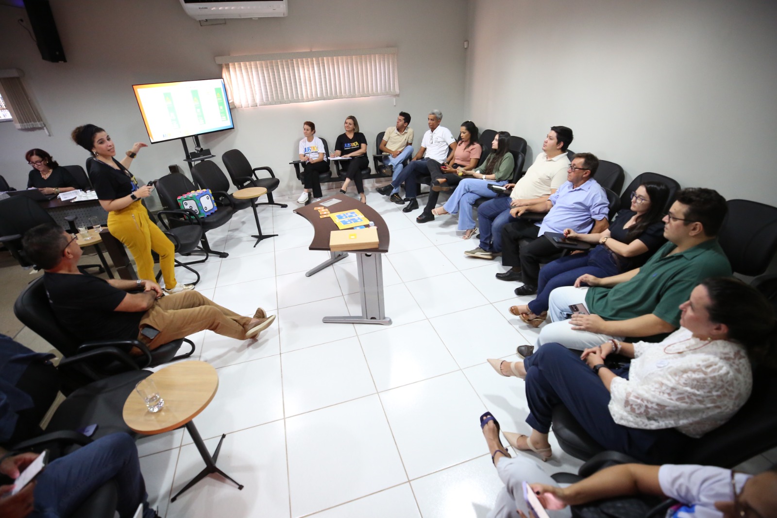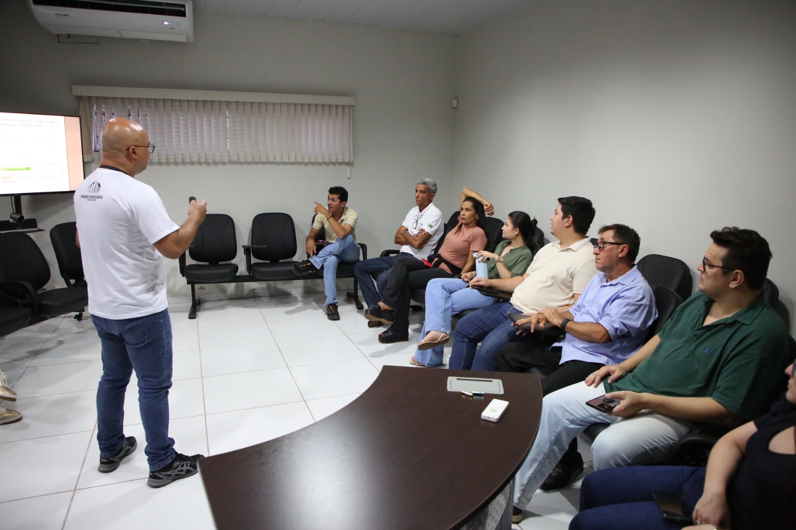 A tarde ainda incluiu a exibição de um vídeo institucional de apresentação do Inovassol - Centro de Inovação do TJTO. E de forma lúdica e descontraída, a coordenadora de assessoramento jurídico da diretoria-geral do TJTO, Roberta Soares Maciel Ismael, apresentou à equipe de Itacajá o SimplesTOC - Programa de Linguagem Simples do Judiciário tocantinense. Juntos, fizeram a dinâmica do Jogo da Linguagem Simples, ressaltando a importância da tradução de conteúdo jurídico acessível à compreensão da população atendida. O diretor judiciário Wallson Brito também tirou dúvidas dos servidores sobre a operacionalização do Eproc, incluindo as atualizações e melhorias do sistema, como a implementação gradativa dos mecanismos de inteligência artificial no auxílio do detalhamento e classificação processual dentro do sistema.