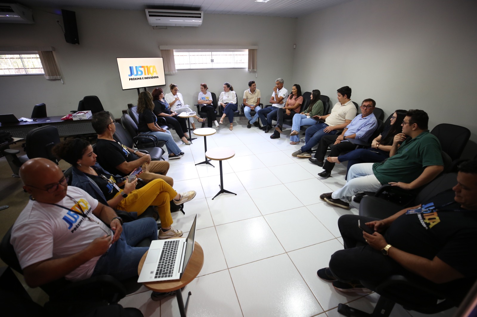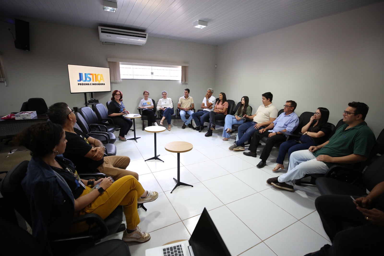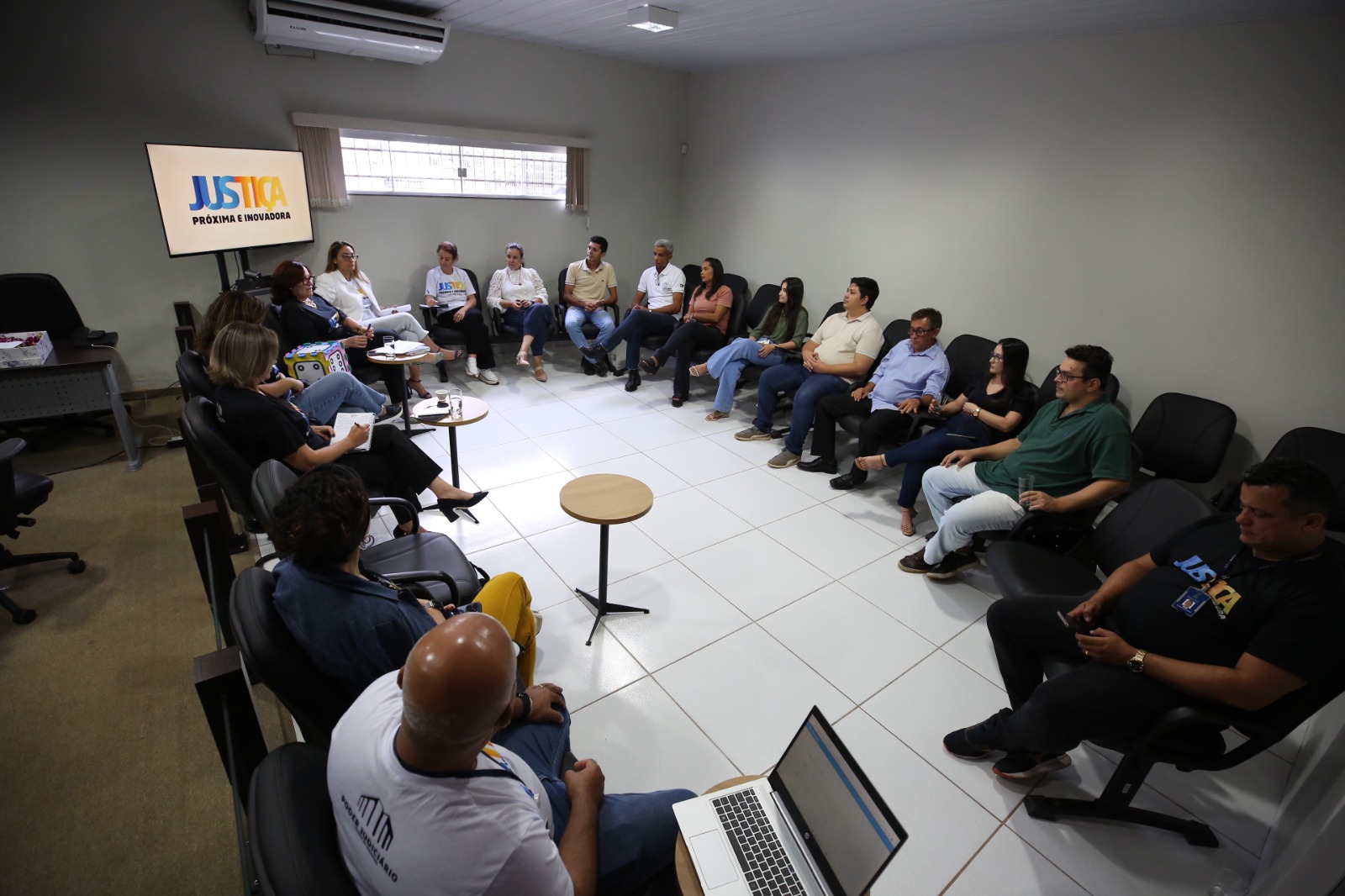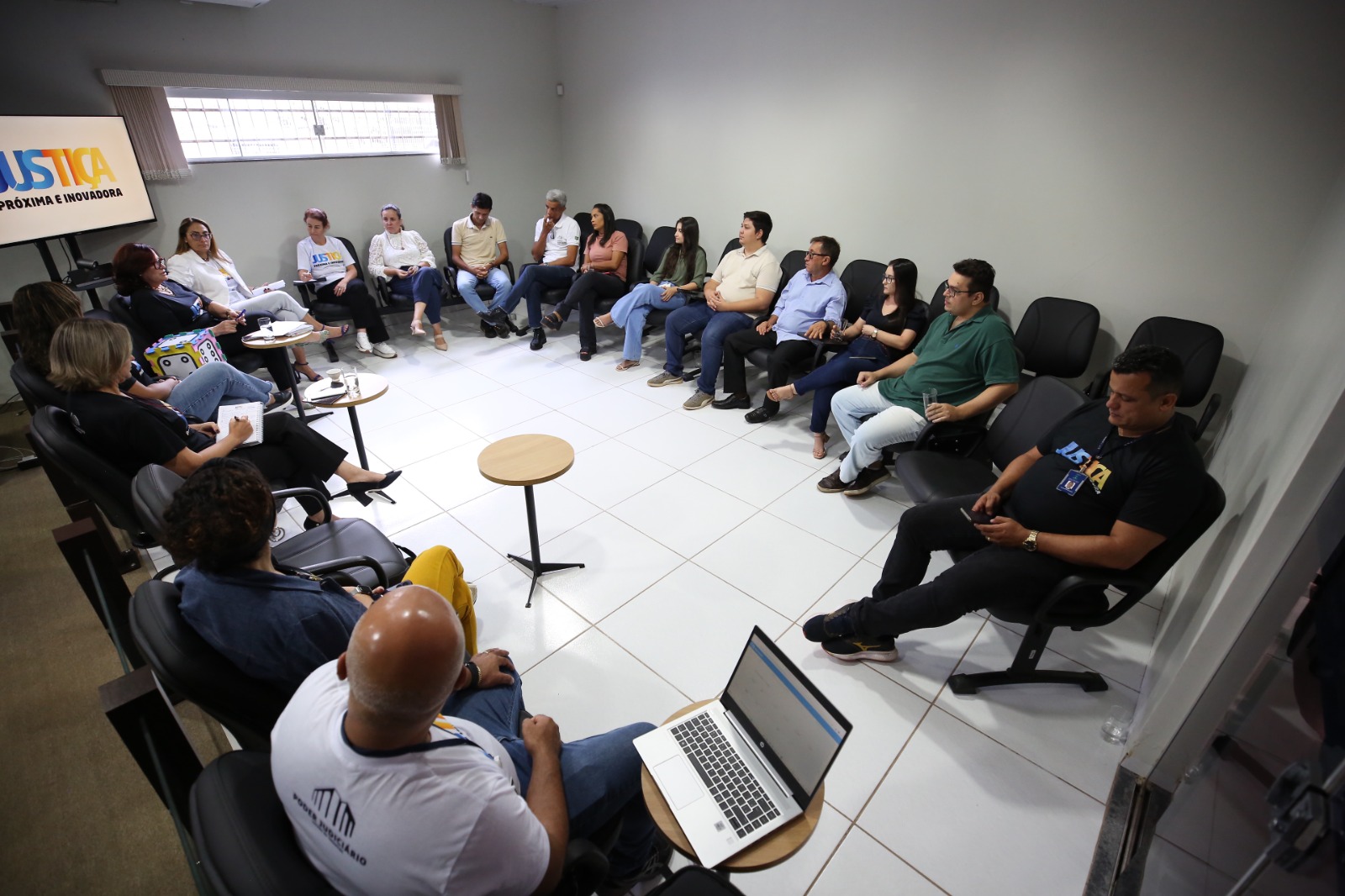 Inspirado nos princípios da Justiça Restaurativa, o encontro aconteceu em um grande círculo no salão do Júri, onde representantes do primeiro e segundo grau dialogaram de forma horizontal, recordando a história da Comarca, desde a instalação na década de 1990, às melhorias ao longo do tempo e as dificuldades no dia a dia.