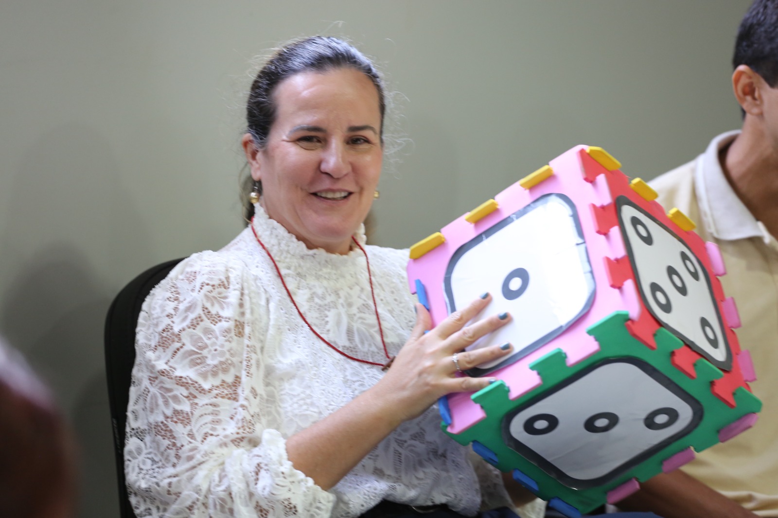 Cessão, indenizações, assédio, comunicação institucional entre outros pontos também foram destacados através de um jogo de dados de perguntas e respostas com a seguinte dinâmica: os integrantes da Comarca jogavam o dado e, de acordo com o número sorteado e a temática correspondida, diretores e diretoras setoriais presentes na comitiva junto à presidência, respondiam aos questionamentos.
