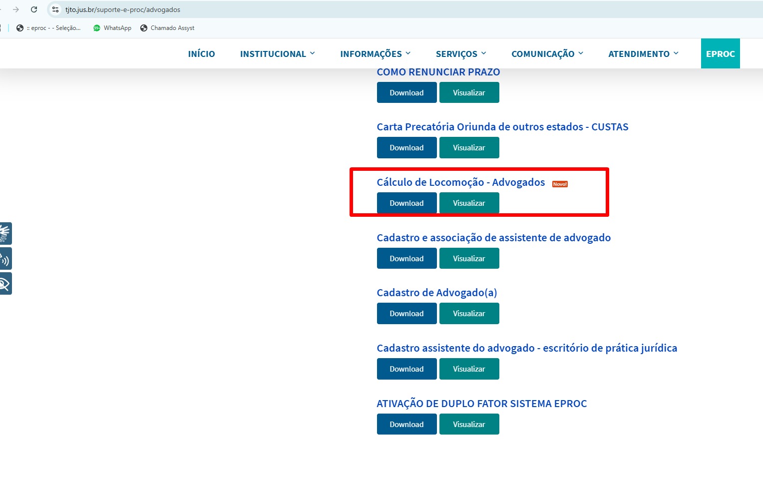 O TJTO disponibilizou o Manual de Utilização da Ferramenta de Locomoção - Perfil Advogados na página do eproc. Neste link, os advogados podem ter acesso a todos os manuais referentes ao sistema.