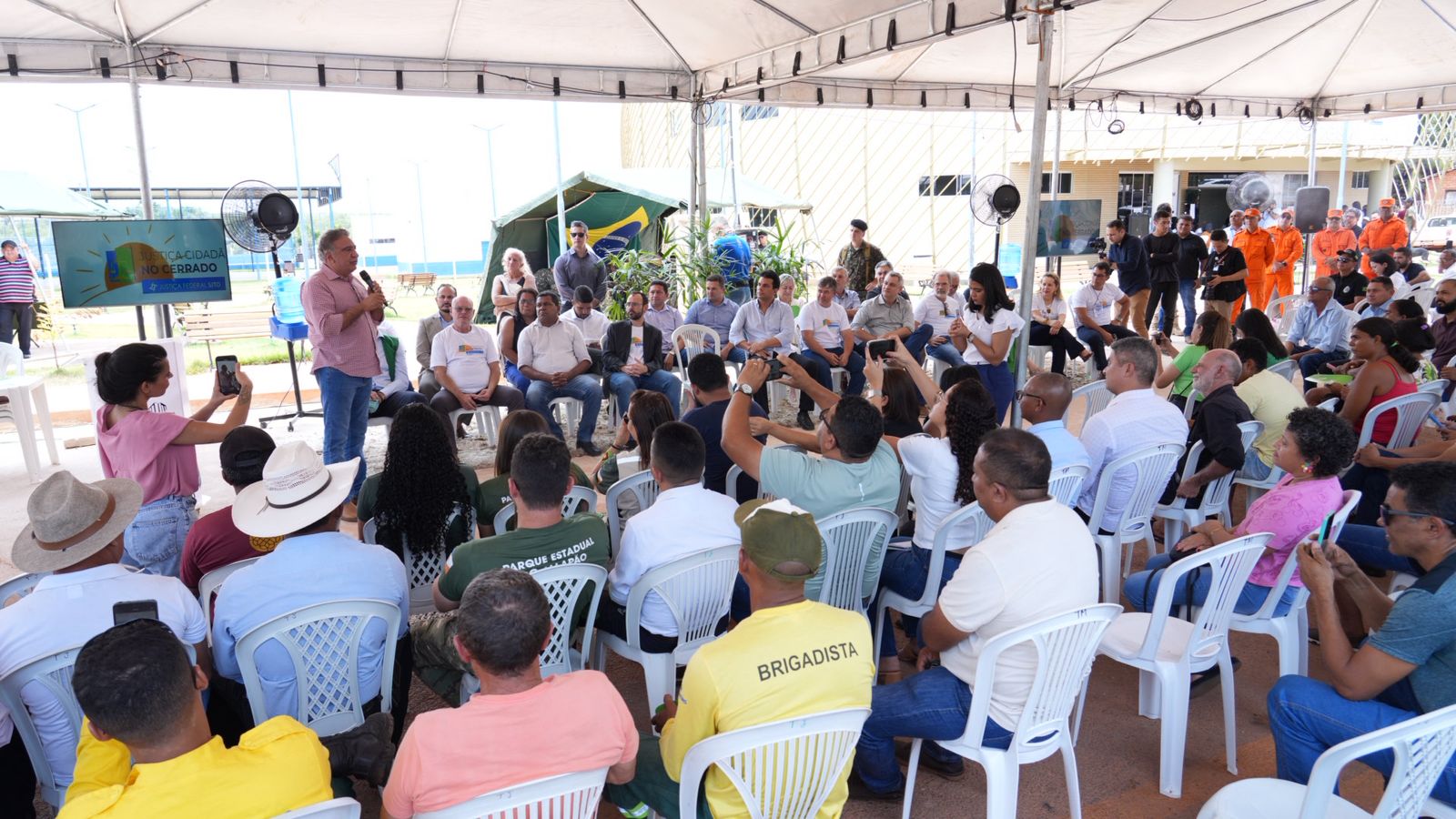 Rondinelli Ribeiro A imagem mostra diversas autoridades sentadas, durante a solenidade de abertura do projeto Justiça Cidadã no Cerrado.