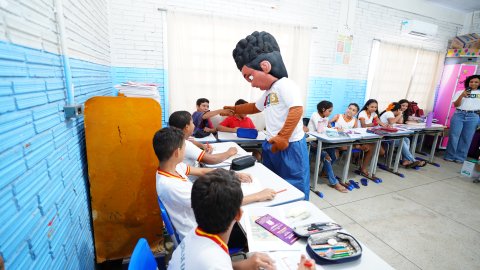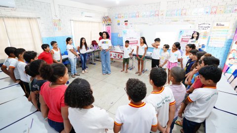 Foram atendidas duas turmas do 5º ano no período matutino, com 24 estudantes cada, e duas turmas no período vespertino, com 18 e 19 alunos. A atividade busca sensibilizar crianças e adolescentes para a construção de uma cultura baseada no respeito e na não violência.