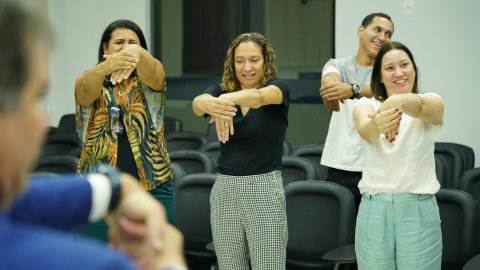 A diretora de Gestão de Pessoas, Márcia Mesquita, falou sobre os dois eixos de atuação da gestão: Humanização e valorização dos servidores estabelecidos nas metas 36, 38 e 40 da gestão 2023/2025; e Qualidade de vida. O primeiro eixo trata de programas voltados à capacitação dos servidores e servidoras; Programa de Preparação para a Aposentadoria (PPA); projeto de Acompanhamento e Monitoramento dos Servidores em Teletrabalho e outros. No eixo Qualidade de Vida, a diretora falou da interiorização dos fisioterapeutas credenciados pelo Centro de Saúde (Cesau/TJTO) para a promoção da ginástica laboral. Já há um profissional  presente em 30 das 36 comarcas. Em Arraias, está previsto o credenciamento de fisioterapeuta a partir de novembro.