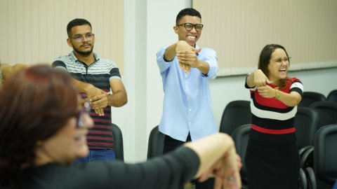 Com isso, a dinâmica foi finalizada pela fisioterapeuta do Cesau, Sandra Carvalho é o fisioterapeuta da Comarca, Rogério Dias Teixeira. “Fiquei animadíssima com a notícia de que teremos um fisioterapeuta aqui em Arraias. Sou apaixonada por fisioterapia, fiz pilates online. Não vou perder uma sessão de ginástica laboral”, disse a secretária do Cejusc, Vagna Carla Alves Costa.