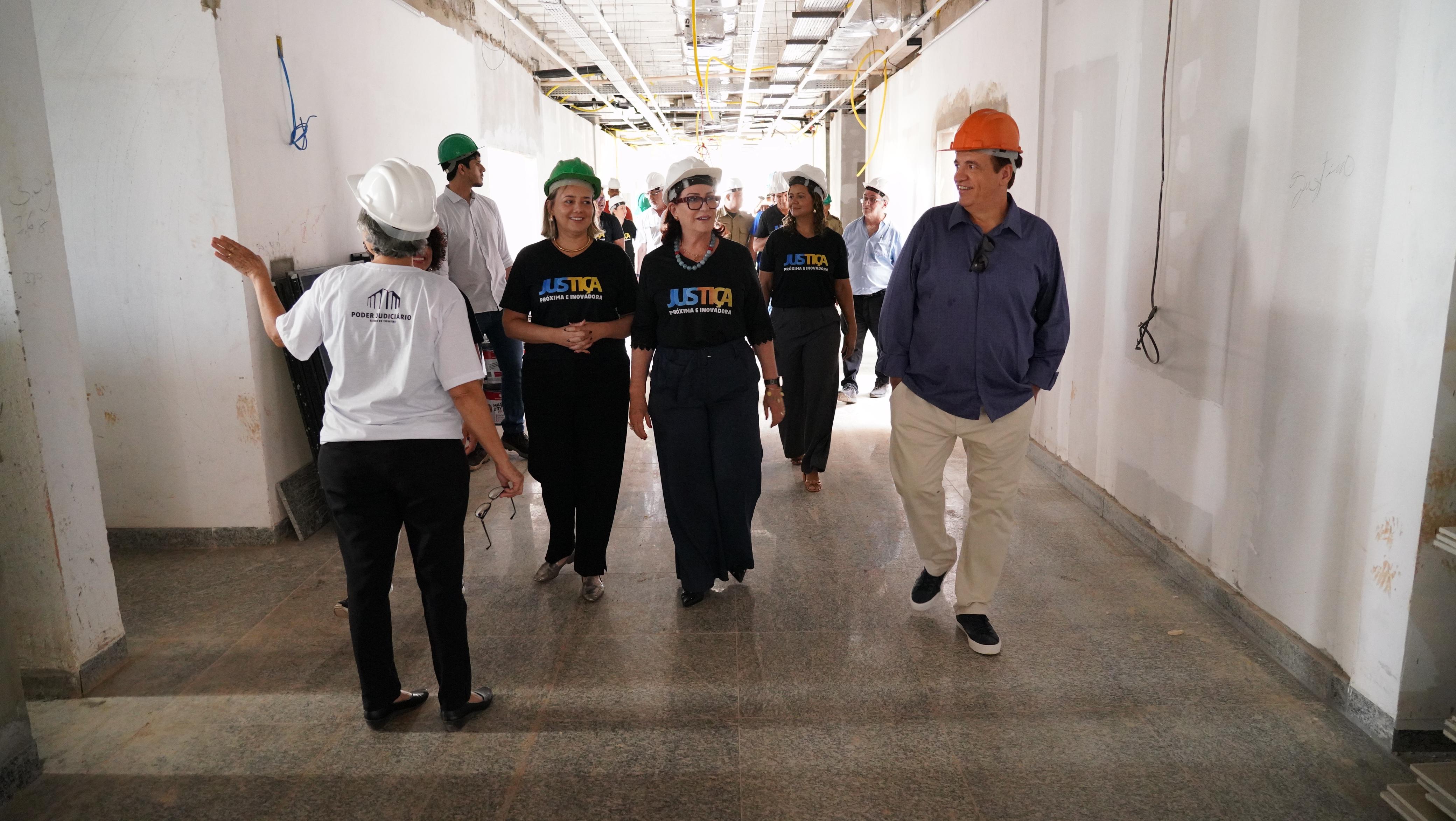 Antes da reunião, a presidente do TJTO, desembargadora Etelvina Maria Sampaio Felipe, acompanhada da diretora-geral, Ana Carina Souto, da diretora de Infraestrutura e Obras, Rosane Helena Mesquita Vieira, do arquiteto Juarez Marinho e do engenheiro Zailon Labre Batista Miranda, visitou as obras do novo prédio da comarca de Gurupi, no Centro Administrativo da cidade.