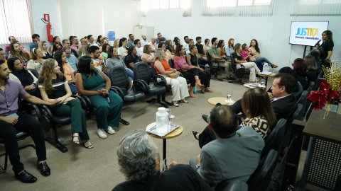 Sabe aquela família grande, em que o sofá está sempre apertadinho, a mesa de jantar está rodeada de pessoas, repleta de alegria e aquele calor humano? Pois assim ficou o salão do Tribunal do Júri nesta quarta-feira. Servidores(as) novos(as), com décadas de dedicação ao Judiciário, e aqueles à espera da aposentadoria escutaram atentamente toda a equipe do TJTO. Eles fizeram perguntas à presidente, riram, participaram de momentos lúdicos, assistiram produções do Centro de Comunicação e conheceram as inovações da gestão 2023/2025.