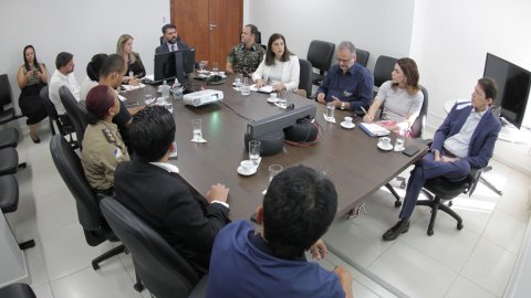 Nesta segunda-feira (05/08), representantes das instituições que compõem a comissão interinstitucional responsável por conduzir cada uma das fases do Plano de Trabalho se reuniram na sede da Corregedoria Geral da Justiça do Tocantins (CGJUS) para mais uma reunião de alinhamento e acompanhamento. O grupo é presidido pelo juiz coordenador do Núcleo de Prevenção e Regularização Fundiária (Nupref/CGJUS), Wellington Magalhães, e tem como membros o Instituto Terras do Tocantins (Itertins), Procuradoria Geral do Estado do Tocantins (PGE), Cartório do Registro de Imóveis de Palmas e prefeitura municipal. Também estiveram presentes na reunião a Polícia Militar e o comando do 22º Batalhão de Infantaria.