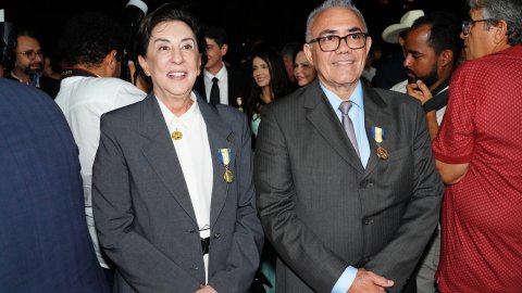 A desembargadora Angela Haonat e o desembargador Adolfo Amaro, também presidente do Tribunal Regional Eleitoral (TRETO), receberam a Medalha Tiradentes pelas mãos do governador Wanderlei Barbosa.