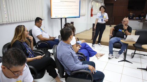 Seguindo a programação, outro ponto alto foi o Jogo da Linguagem Simples, que se destacou pela formação de coletivos diversos, mesclando experientes e novos servidores, para refletirem sobre o juridiquês e traduzi-lo em conteúdo acessível aos cidadãos e cidadãs atendidos pela Comarca.