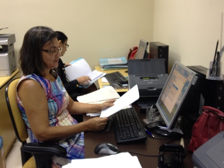 Na 1ª Vara Cível de Palmas, parte da equipe do Nacom auxilia na inserção de 450 feitos físicos no e-Proc, que completam a digitalização da Vara.
