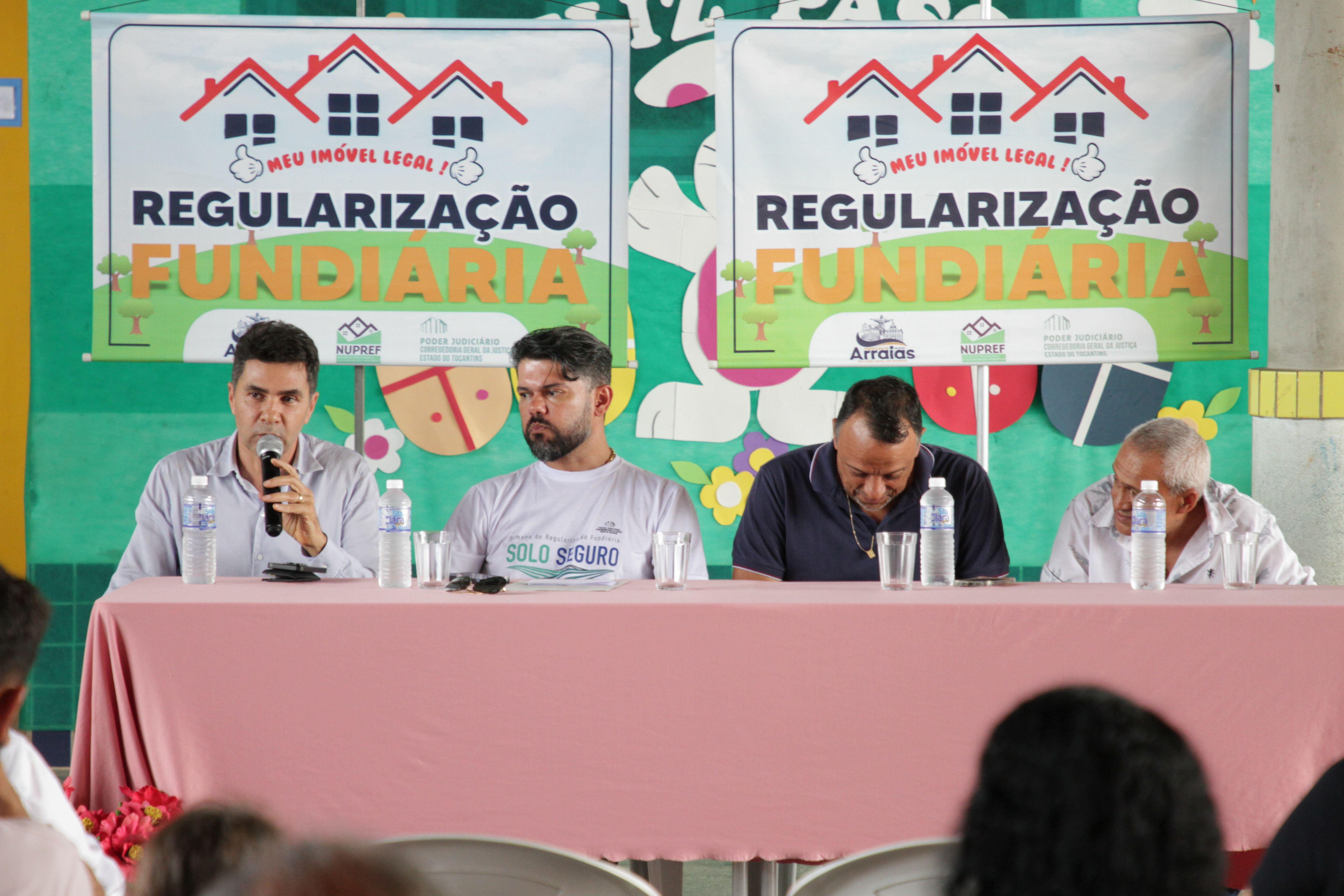 Em Arraias, estiverem presentes o vereador Jomar Beltrão; o oficial substituto do Cartório de Registro de Imóveis de Arraias, Vinícius Negreiros; assessora Jurídica do Nupref, Andreia Modolo, e os servidores Belmiro Gomes, Sintya Santos e Cinthia Camilla; integrantes da Comissão de Regularização do Município de Arraias: Valdelucia Marques Alves, Eleticia Ribeiro Dias, Ednilson Alves Ferreira e Paulo Sérgio Freire.