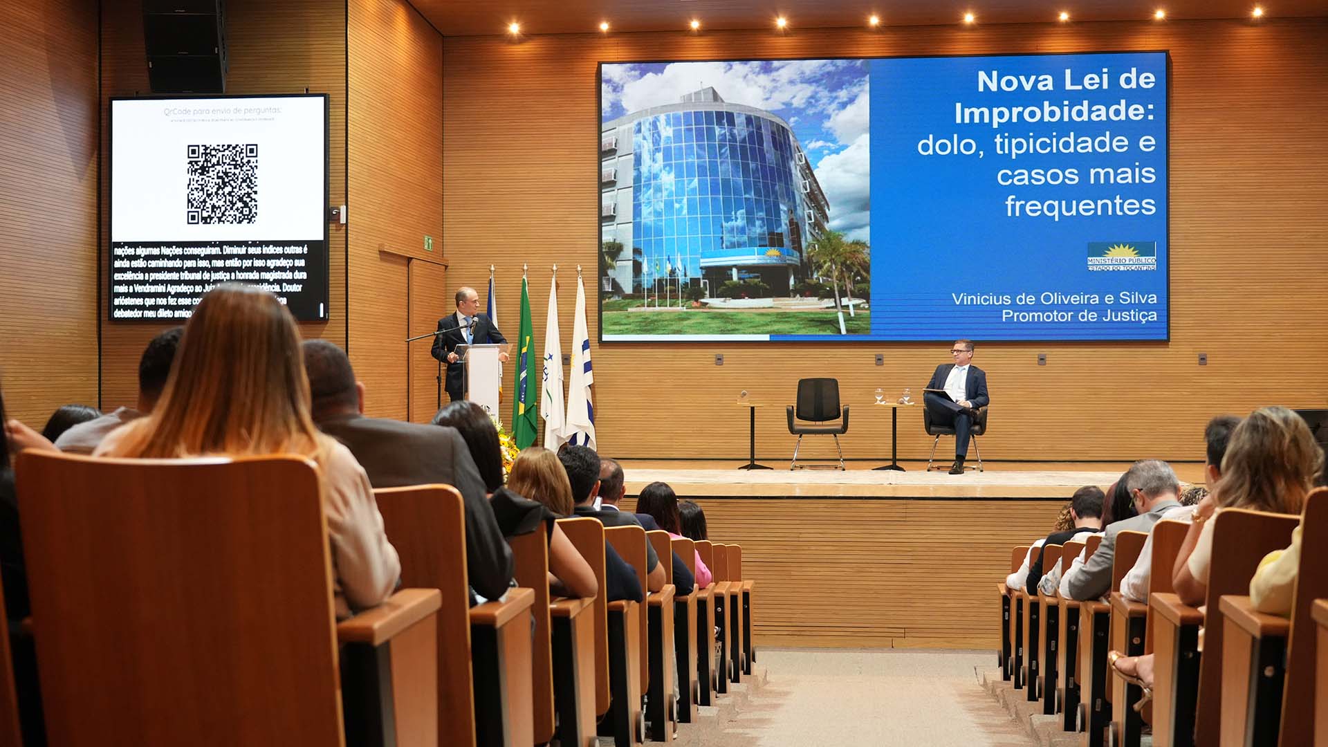 No período da tarde, foram realizados outros dois painéis. “A nova lei de improbidade administrativa: necessidade de dolo, tipicidade e casos mais frequentes”, ministrado pelo promotor de Justiça do MPTO, Vinícius de Oliveira e Silva, com debate conduzido pelo também promotor Pedro Evandro de Vicente Rufato.