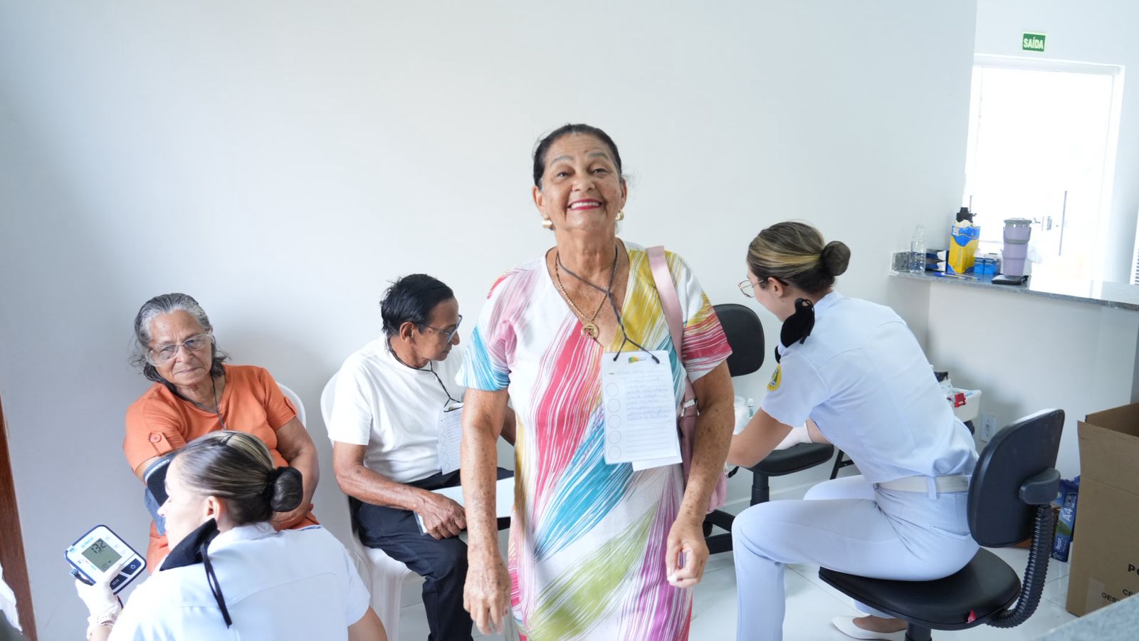 Rosita Mamédio de Moura, de 82 anos, também moradora de Mateiros, soube da ação pelos anúncios na rua e focou nos serviços de saúde. "Eu vim e disse o que está acontecendo comigo, porque eu vivo no meio do mato, mas estou preocupada com a minha saúde", contou. "Gostei muito, o atendimento foi muito bom, muito bonito, já tirei minha pressão, peguei o kit de higiene e roupas no varal para mim e para minhas netas".