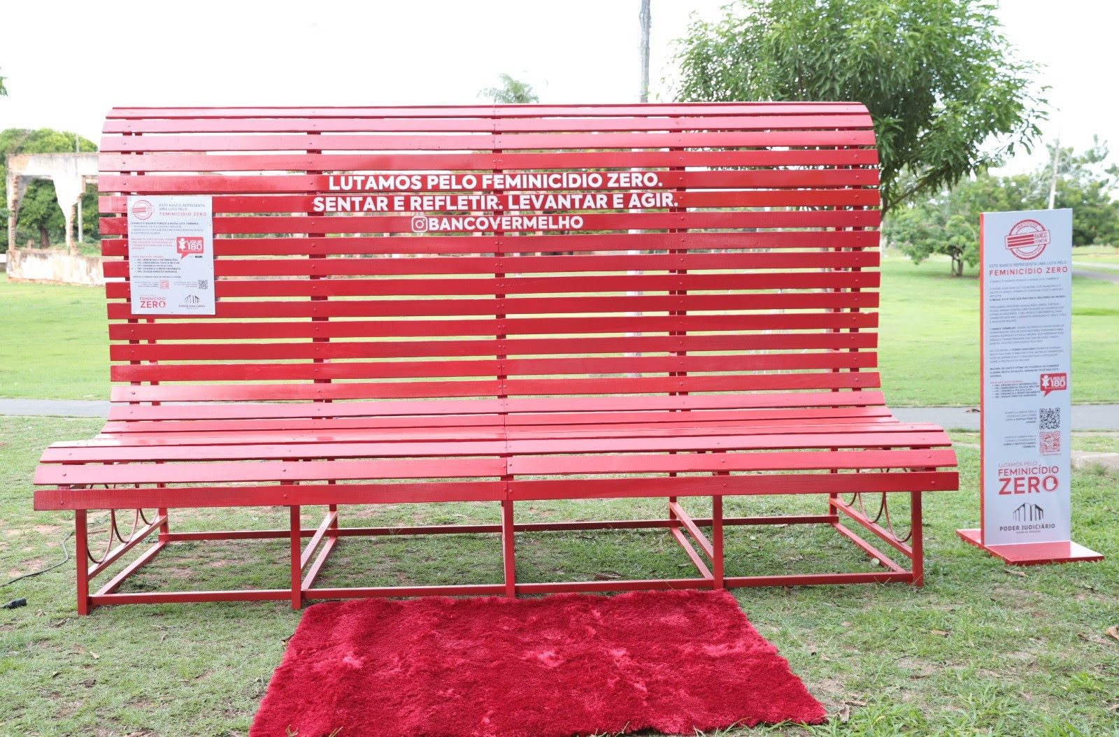O monumento símbolo da campanha contra o feminicídio foi entregue por autoridades nesta quarta-feira (27/11), no Parque Cimba, um dos principais cartões postais de Araguaína. Este é o segundo instalado no município; o primeiro Banco está localizado na Via Lago. Outros 30 bancos de locais públicos foram pintados de vermelho, representando o sangue derramado por todas as vítimas de feminicídio.