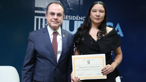 A formanda Ana Carolina Adorno também ressaltou a qualidade da formação oferecida. “O Programa de Residência Jurídica foi uma experiência excelente, que aliou a formação teórica, por meio da pós-graduação ministrada por magistrados(as) e servidores(as) do Tribunal de Justiça, à prática profissional nos gabinetes, sob orientação direta de magistrados(as)”, destacou.