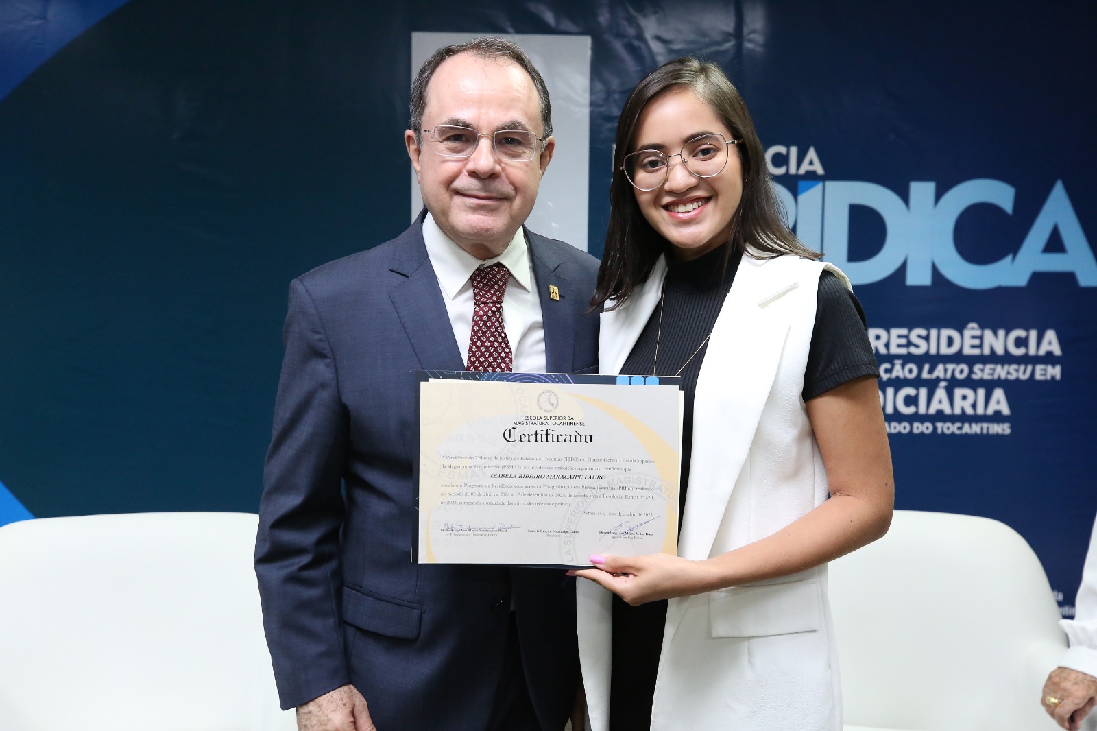 O Poder Judiciário Tocantinense, por meio da Escola Superior da Magistratura Tocantinense (Esmat), realizou, nesta segunda-feira (9/2), a solenidade de entrega de certificados aos(às) concluintes da Turma III do Programa de Residência em Prática Jurídica e da Pós-Graduação Lato Sensu em Prática Judiciária. Ao todo, 88 residentes receberam a certificação, consolidando mais uma etapa de formação voltada ao fortalecimento da prestação jurisdicional no Estado. A cerimônia reuniu magistrados(as), servidores(as), residentes e convidados(as), marcando o encerramento de um ciclo formativo que integra formação acadêmica e experiência prática no ambiente judicial, contribuindo para a qualificação de profissionais comprometidos(as) com a justiça e com o interesse público.