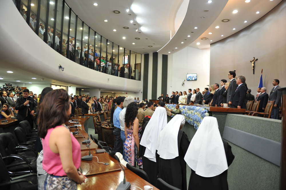 A presidente do Tribunal de Justiça do Tocantins, desembargadora Ângela Prudente, participou, neste domingo (4/5), da posse do novo governador do Estado do Tocantins Sandoval Cardoso. A solenidade ocorreu durante sessão especial realizada na Assembleia Legislativa. Sandoval, que estava como governador interino comandará o Estado, ao lado do vice-governador Tom Lyra, durante o mandato tampão, no período compreendido entre os dias 4 de maio e 31 de dezembro de 2014.