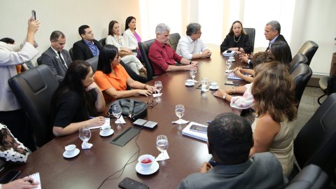 Participaram da reunião os(as) presidentes do Sindicato dos Servidores da Justiça do Estado do Tocantins (Sinjusto), Maria das Dores; do Sindicato dos Oficiais de Justiça (Sindojusto), Hugo Pinto Corrêa; e da Associação dos Servidores (ASTJ), Vera Lima.