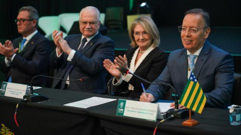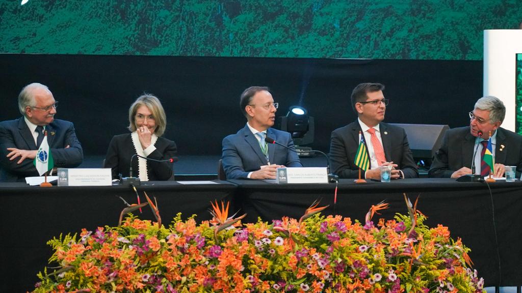 Após o encerramento dos debates técnicos do IX Encontro do Conselho de Presidentes dos Tribunais de Justiça do Brasil (Consepre), em Foz do Iguaçu (PR), foi realizada a cerimônia de posse da nova Comissão Administrativa do Consepre, eleita durante o VIII Encontro, em Manaus (AM), no mês de novembro de 2023. O desembargador Carlos França, foi reconduzido ao cargo de Presidente do Consepre. Representando o Tocantins, a comissão passará a ter a presidente do Tribunal de Justiça, desembargadora Etelvina Maria Sampaio Felipe, como vice-presidente da Cultura.